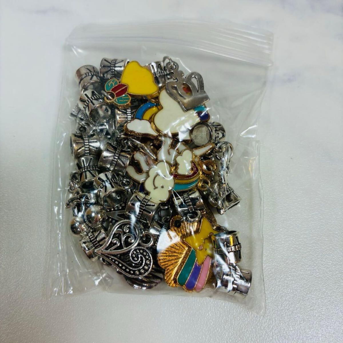 ゆらゆらと揺れるチャームやビーズなど、選ぶだけでもテンションの上がる多種多様なデザインをセットでご用意致しました。ブレスレットやネックレスが作成できる紐が付属するので、届いてすぐにお楽しみいただけます。