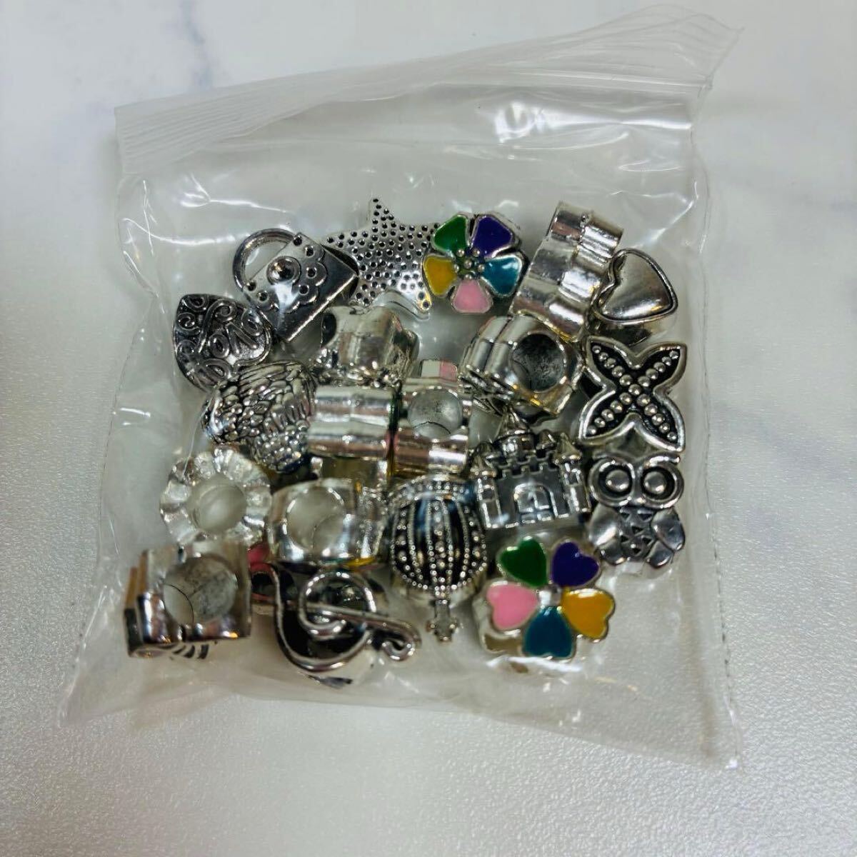 形やデザインの異なるチャームを自由に組み合わせて作成できるアクセサリー製作キットです。チャームを紐に通していくだけの簡単作業で、アクセサリー作りが初めてのお子様でも気軽に挑戦できます。