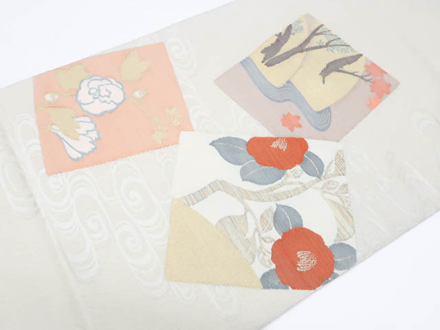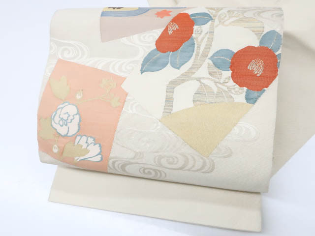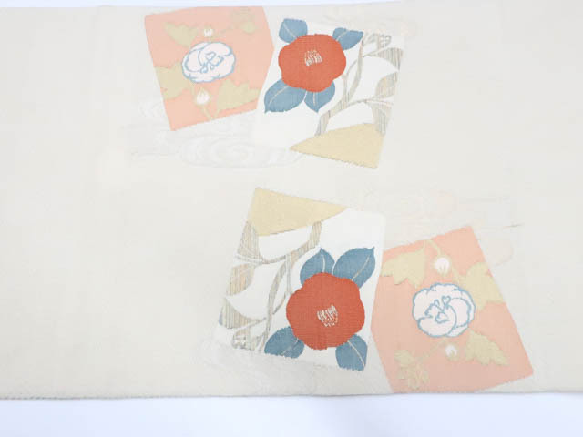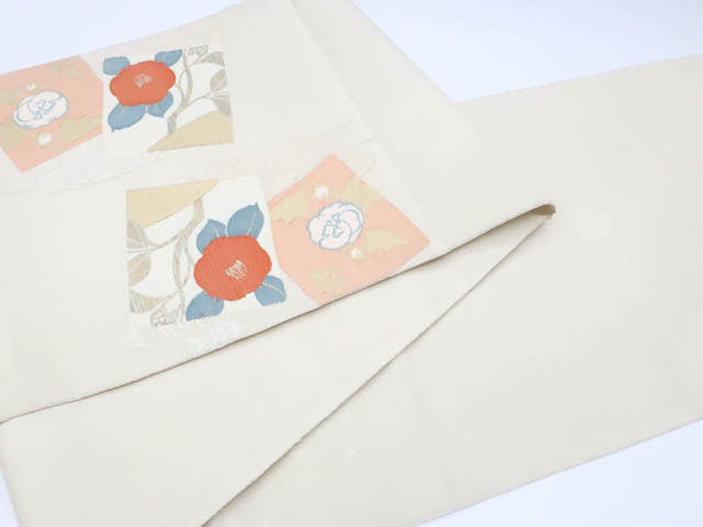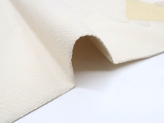 リサイクル商品の為、無地場に薄しみがございますがご着用いただけると存じます。 地色は 生成りです。 1枚目の画像が近いお色かと思われます。 素材は正絹です。 |