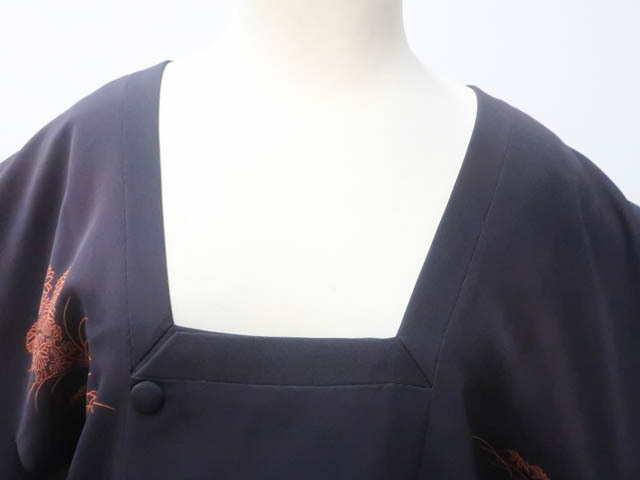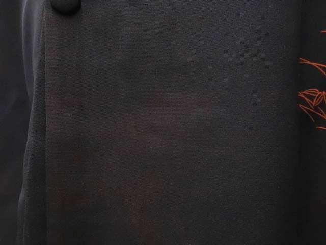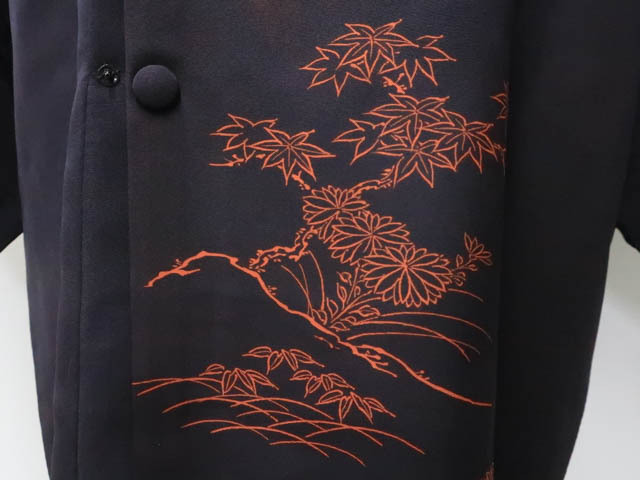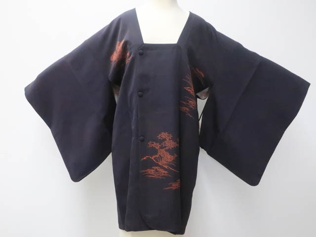 リサイクル商品のため、染色にじめと、身頃、袖等所々に汚れがございますが着用可能なお品です。 地色は 紫です。 1枚目の画像が近いお色かと思われます。 素材は正絹です。 |