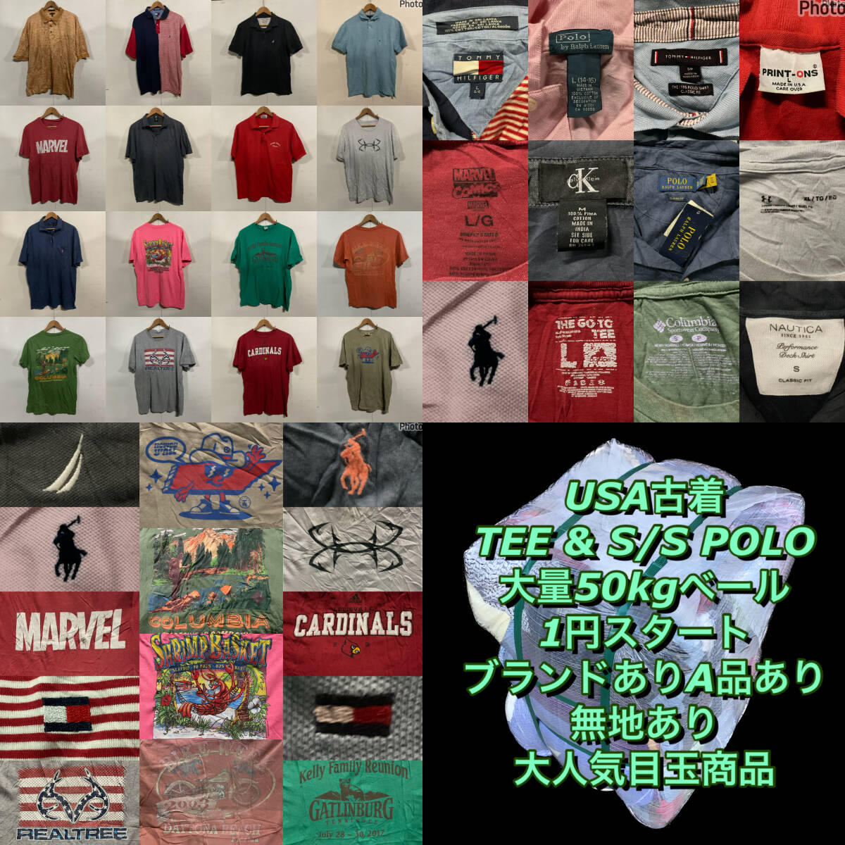 【T1788】★1円スタート★ アメリカ古着Tシャツ&半袖ポロシャツ大量50kgベール目玉商品 無地豊富 カラバリ豊富 ブランドあり サイズMIX