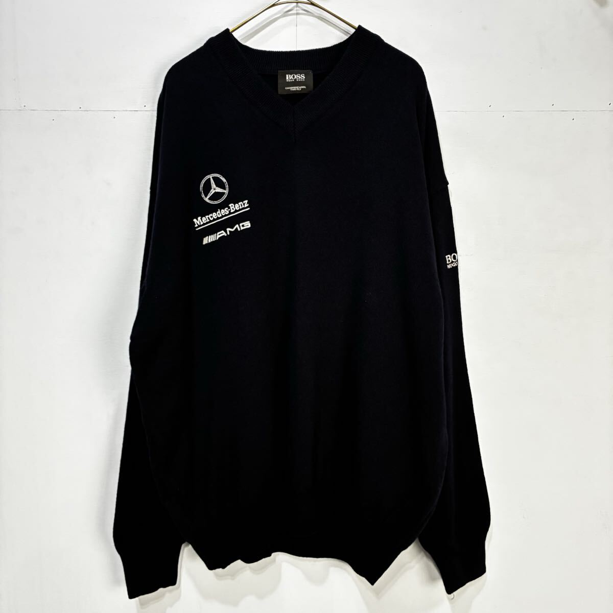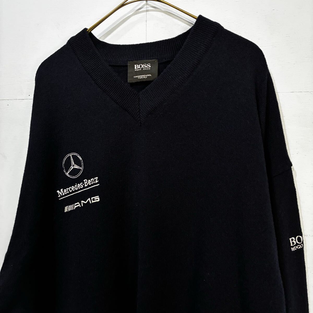 HUGO BOSS イタリア製 極上 カシミヤニット Vネックニット 刺繍ロゴ メルセデスベンツ AMG セーター ヒューゴボス【送料一律/同梱可能】Aの出品です。