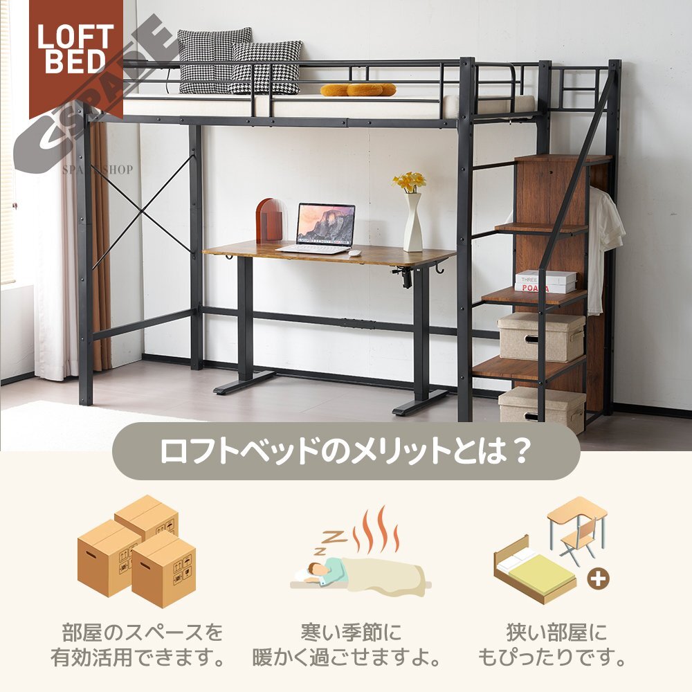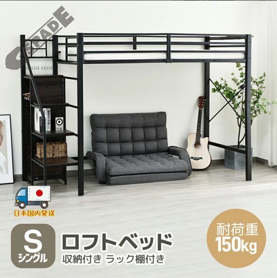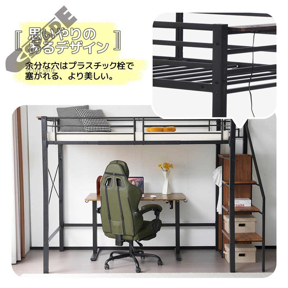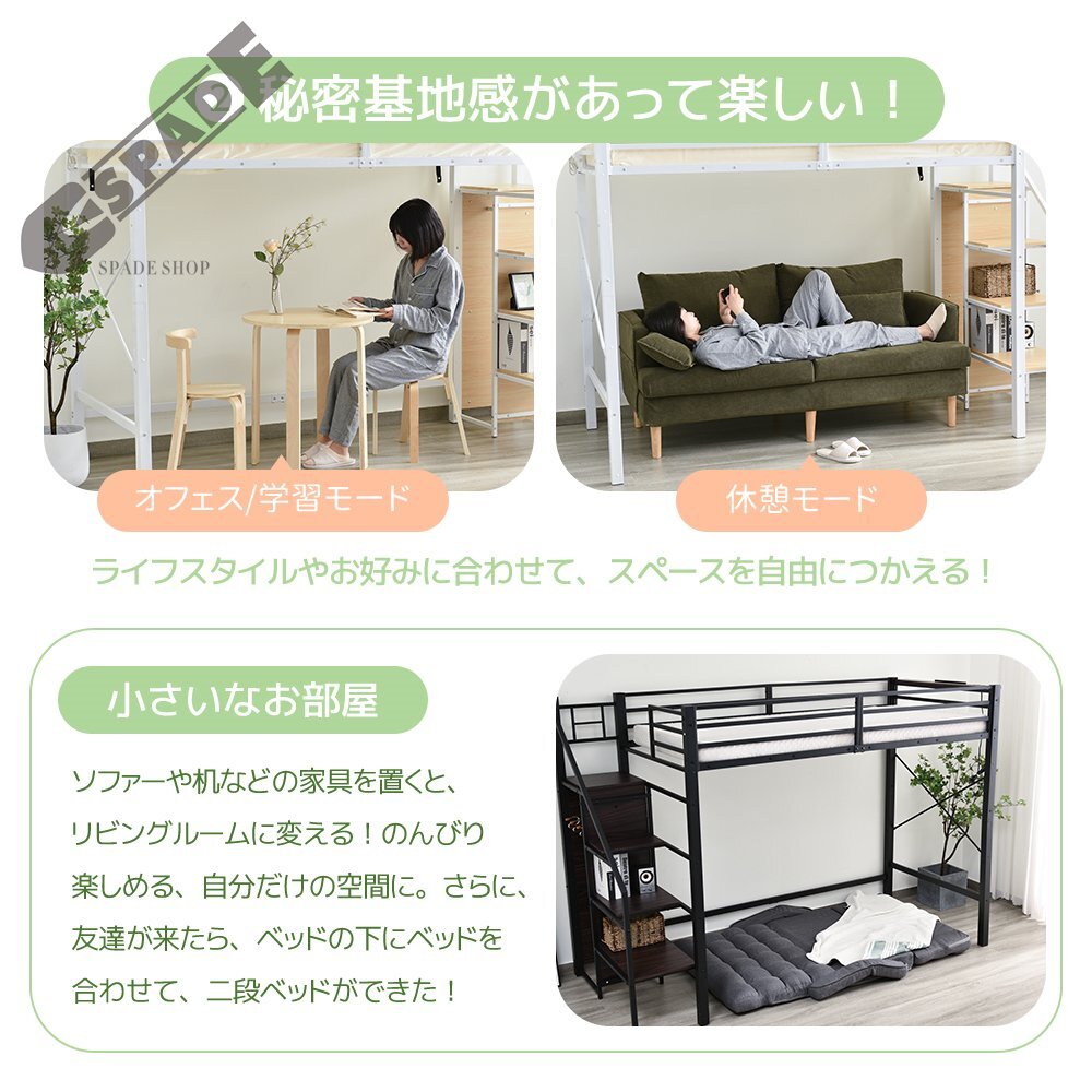 【国内発送】システムベット ロフトベッド シングル コンセント付き 収納付き ラック棚付き 部屋二段ベッド スチール 北欧風 耐震