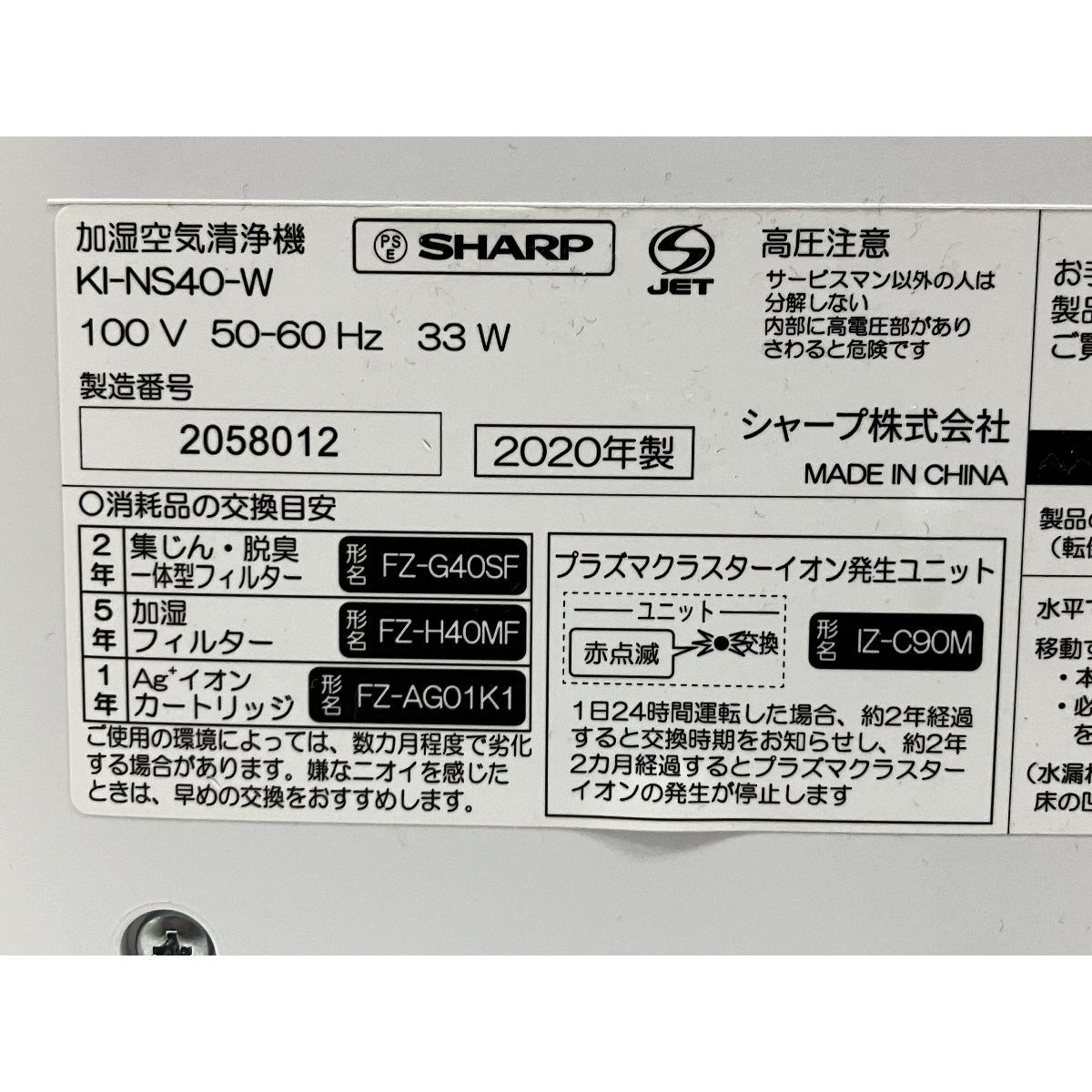 | SHARP シャープ 加湿空気清浄機 KI-NS40-W プラズマクラスター 中古 O10624744 |