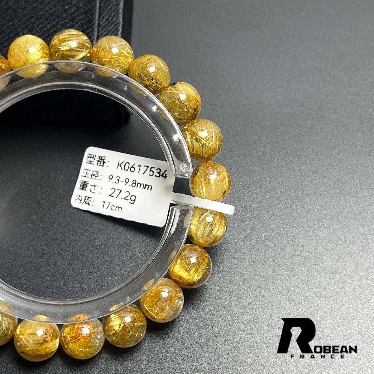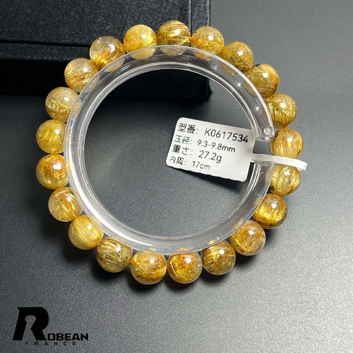 高級 EU製 定価19万円★ROBEAN・極!極満針ルチルクォーツ★ブレスレット パワーストーン 天然石 金運 お守り 9.3-9.8mm K0617534