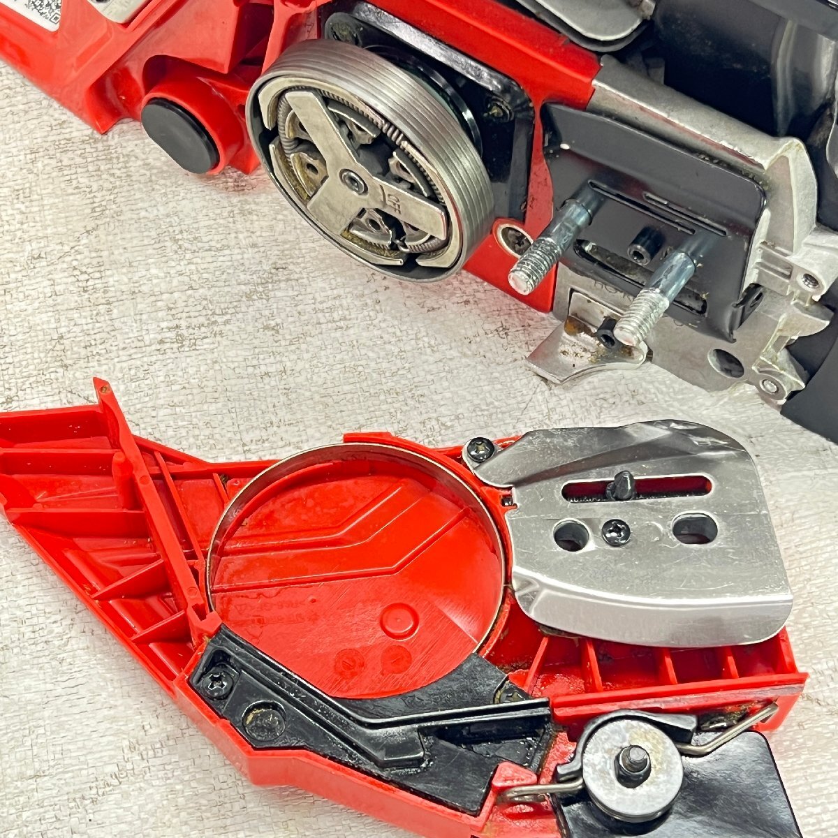 ※エンジン始動確認を行いチェーンソーオイルの拭き取り清掃を行いましたが、