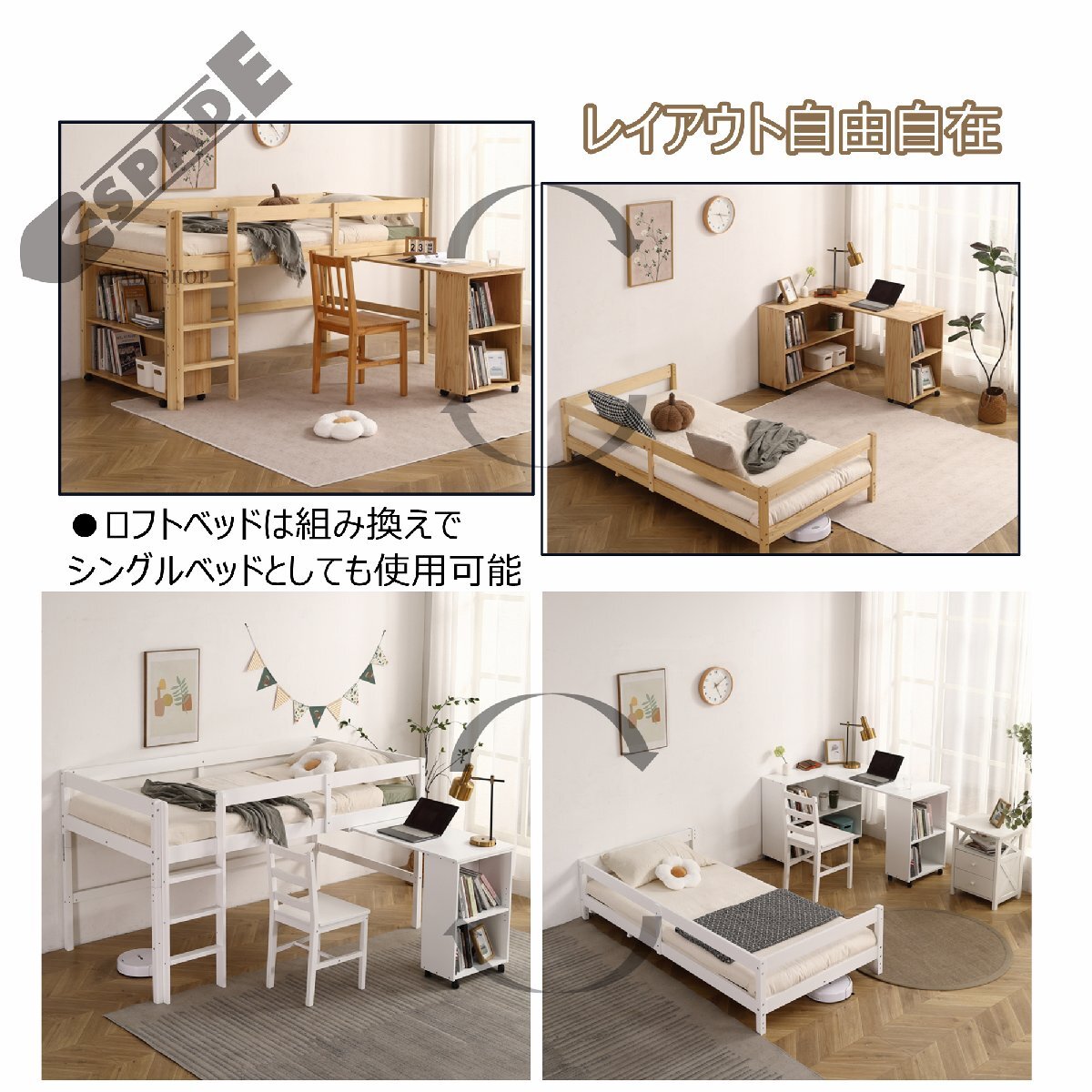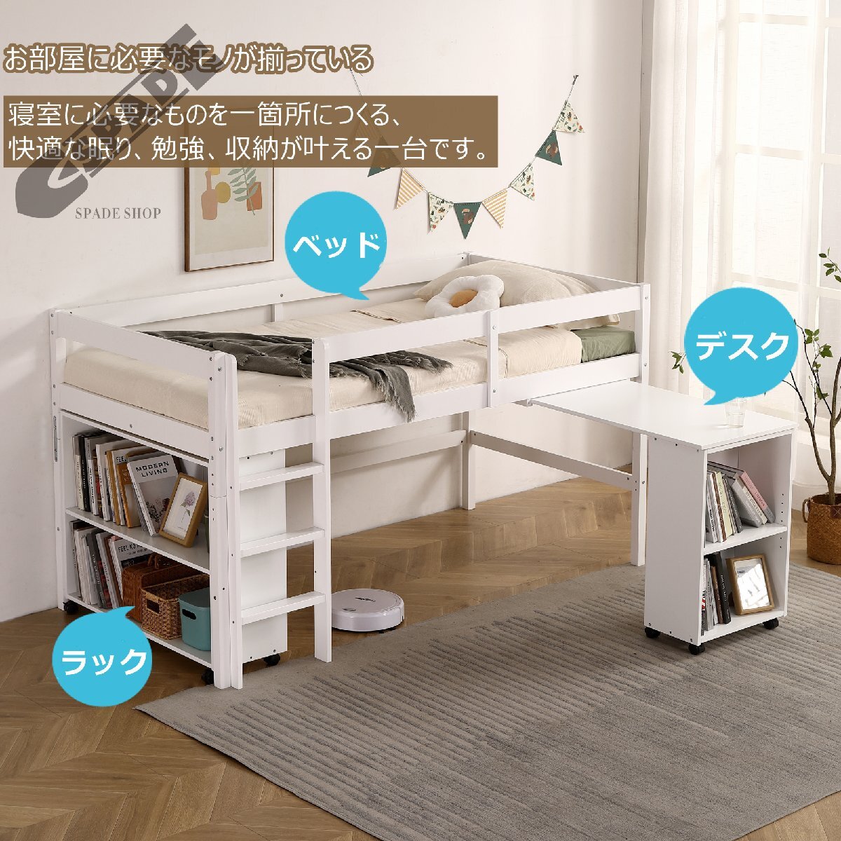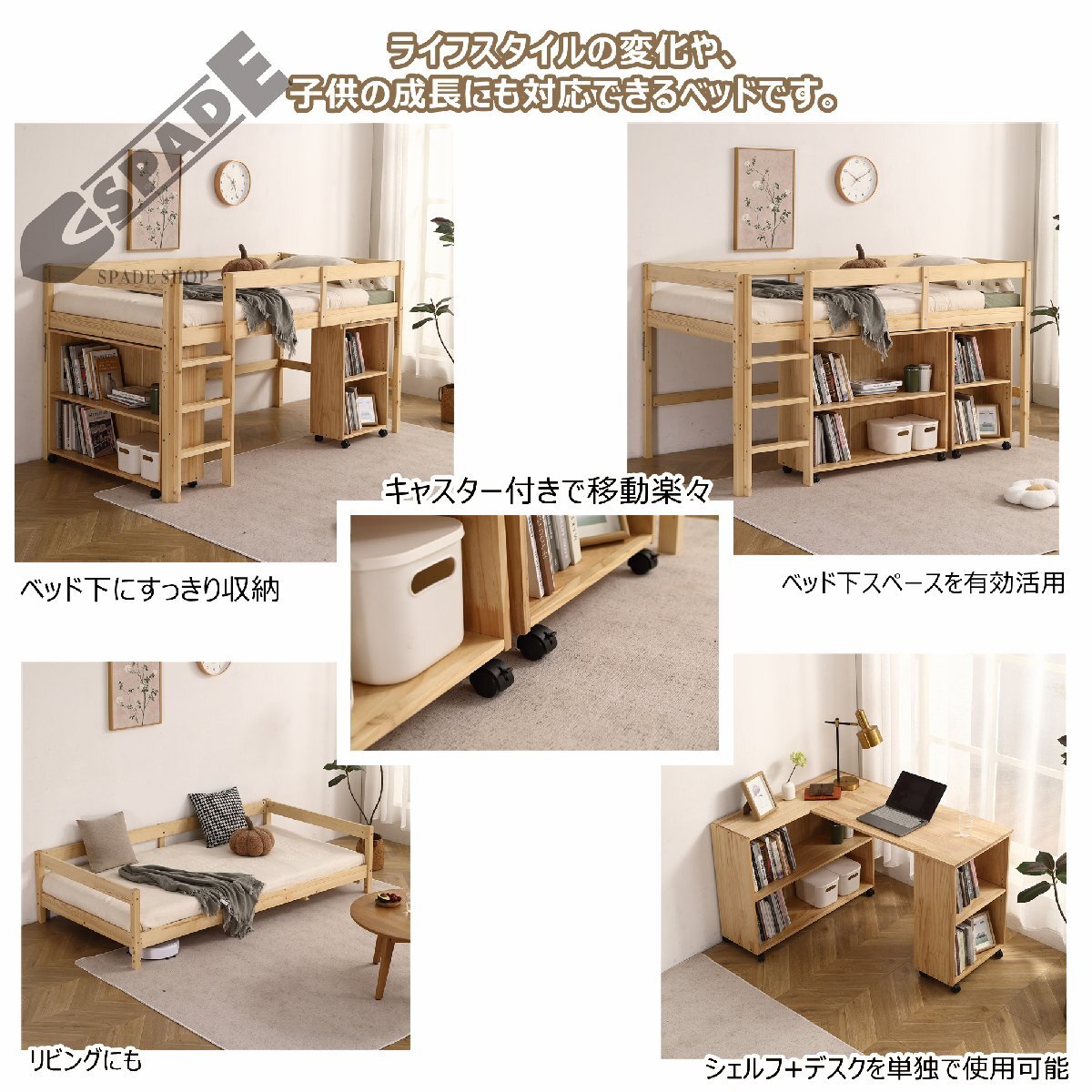 【国内発送】システムベッド ロフトベッド 木製 シングル ベッド ロータイプ ベッド デスク 本棚 机付き 学習机 コンパクト 本棚付き 木製