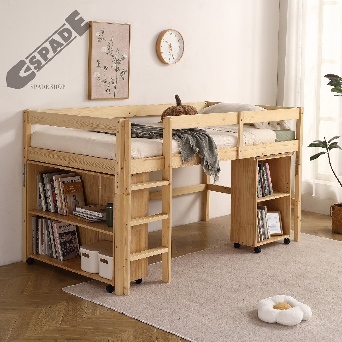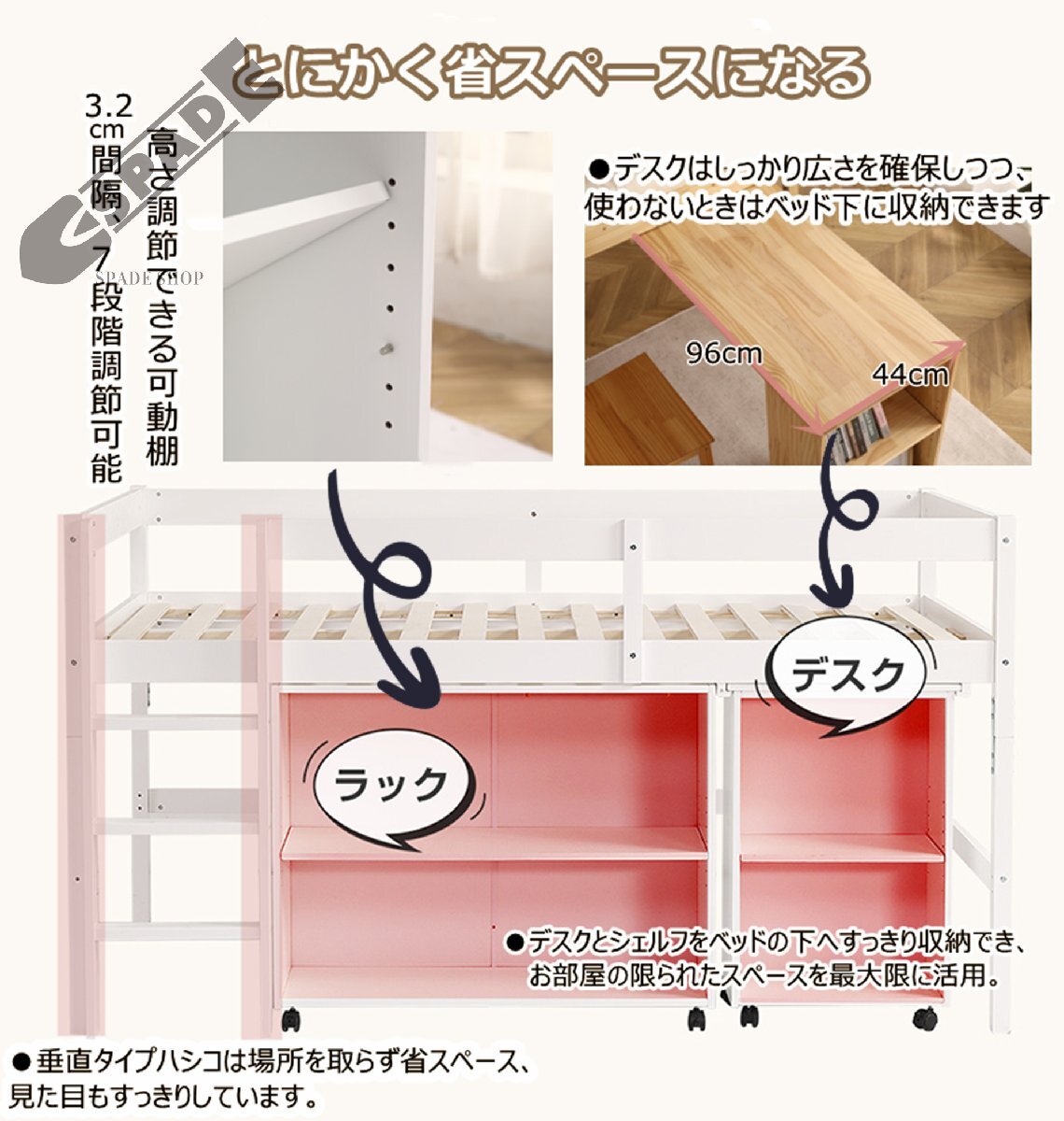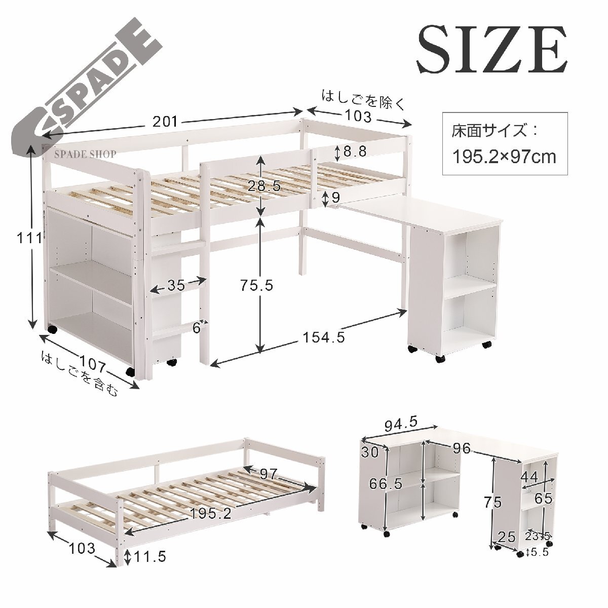 【国内発送】システムベッド ロフトベッド 木製 シングル ベッド ロータイプ ベッド デスク 本棚 机付き 学習机 コンパクト 本棚付き 木製
