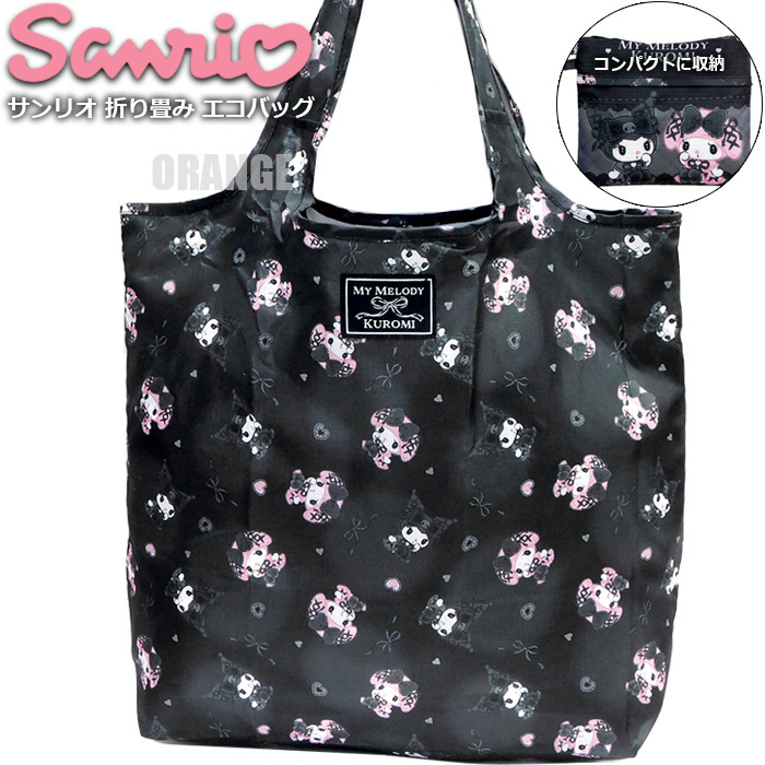 送料無料 マイメロディ クロミ エコバッグ 折りたたみ レディース トートバッグ コンパクト ゴスロリ 女の子 キッズ 子供 ブラック 新品■