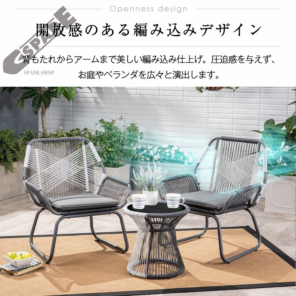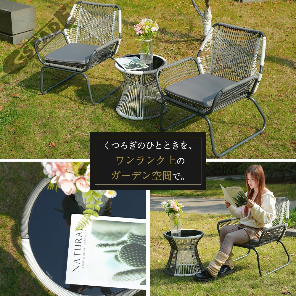 【国内発送】 ガーデンファニチャー テーブル 3点セット 2脚 ガーデンベランダガーデンチェアセットテーブルセット クッション付