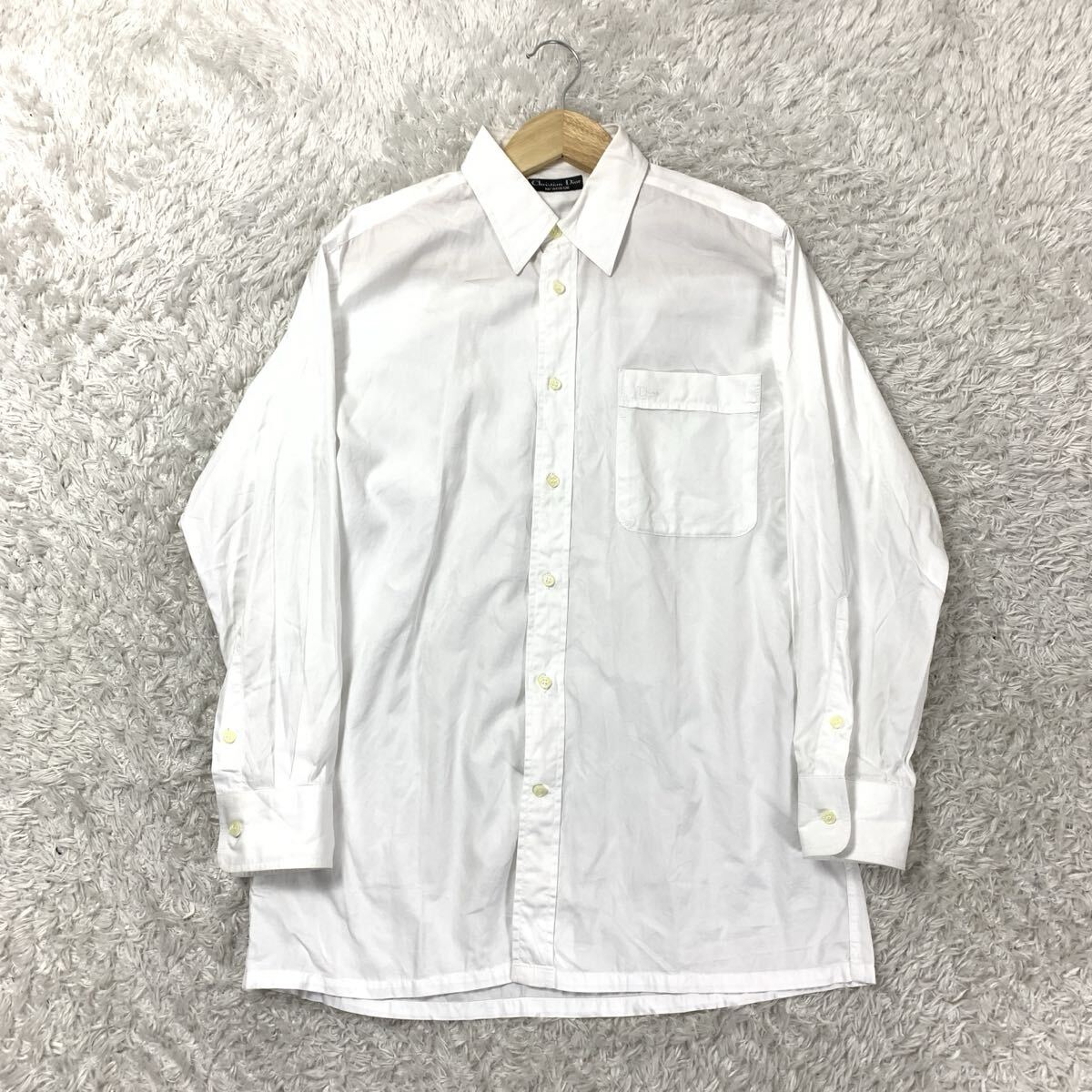 Christian Dior MONSIEUR クリスチャンディオール ムッシュ 長袖シャツ 長袖トップス 刺繍ロゴ 白 ホワイト コットン100% YA369