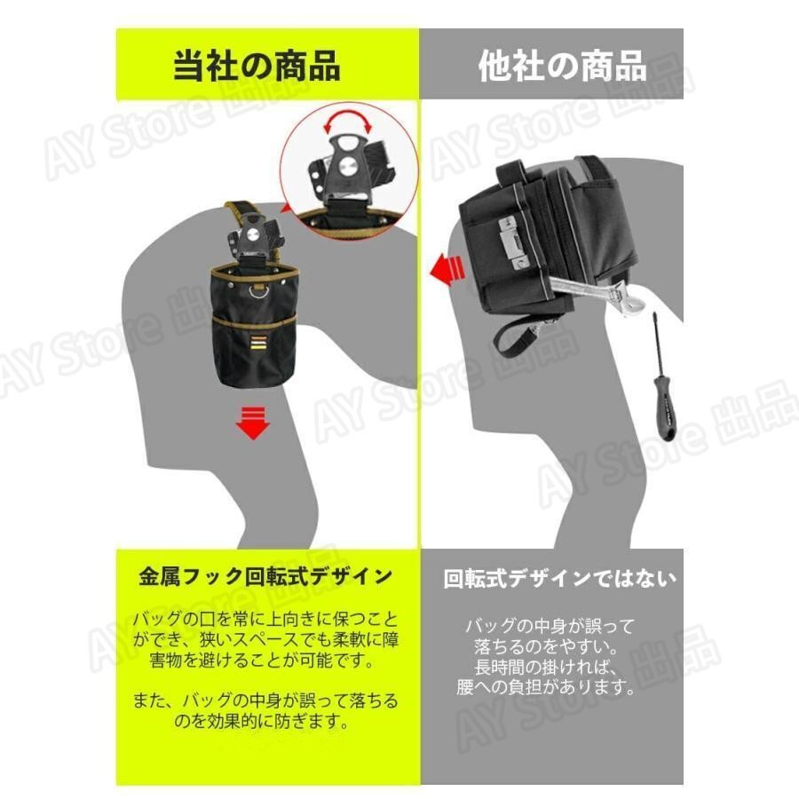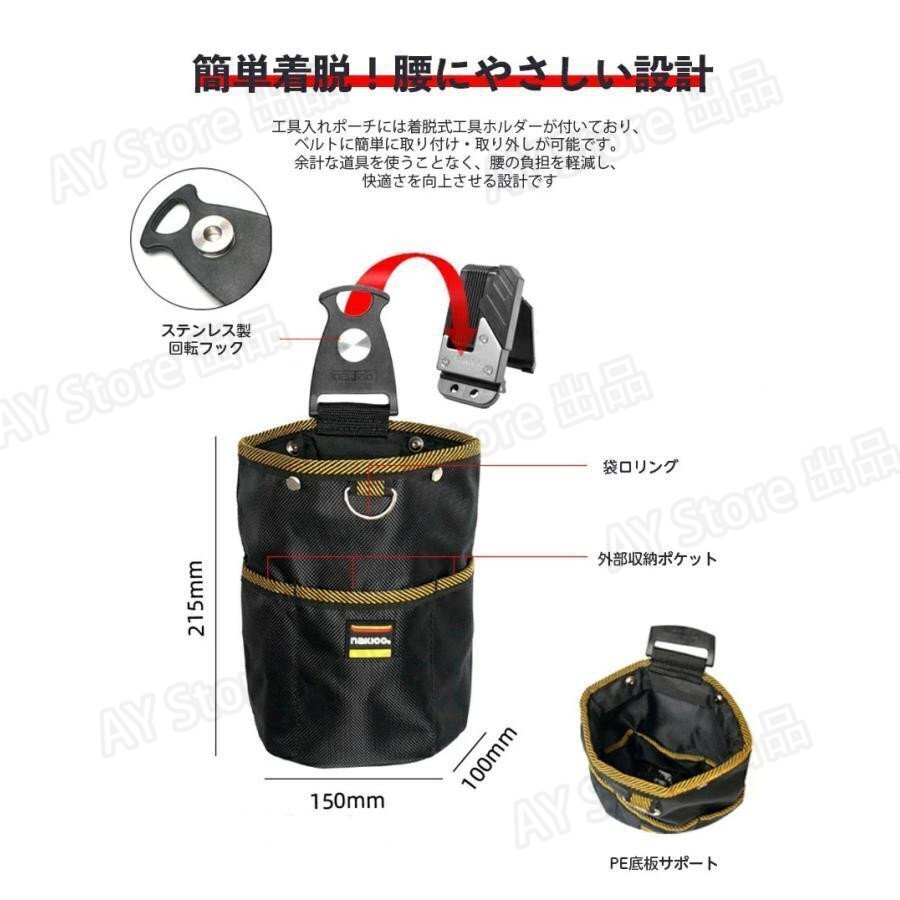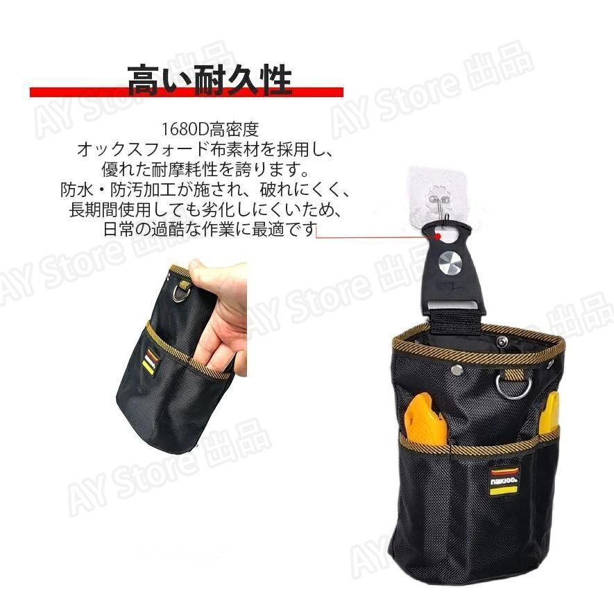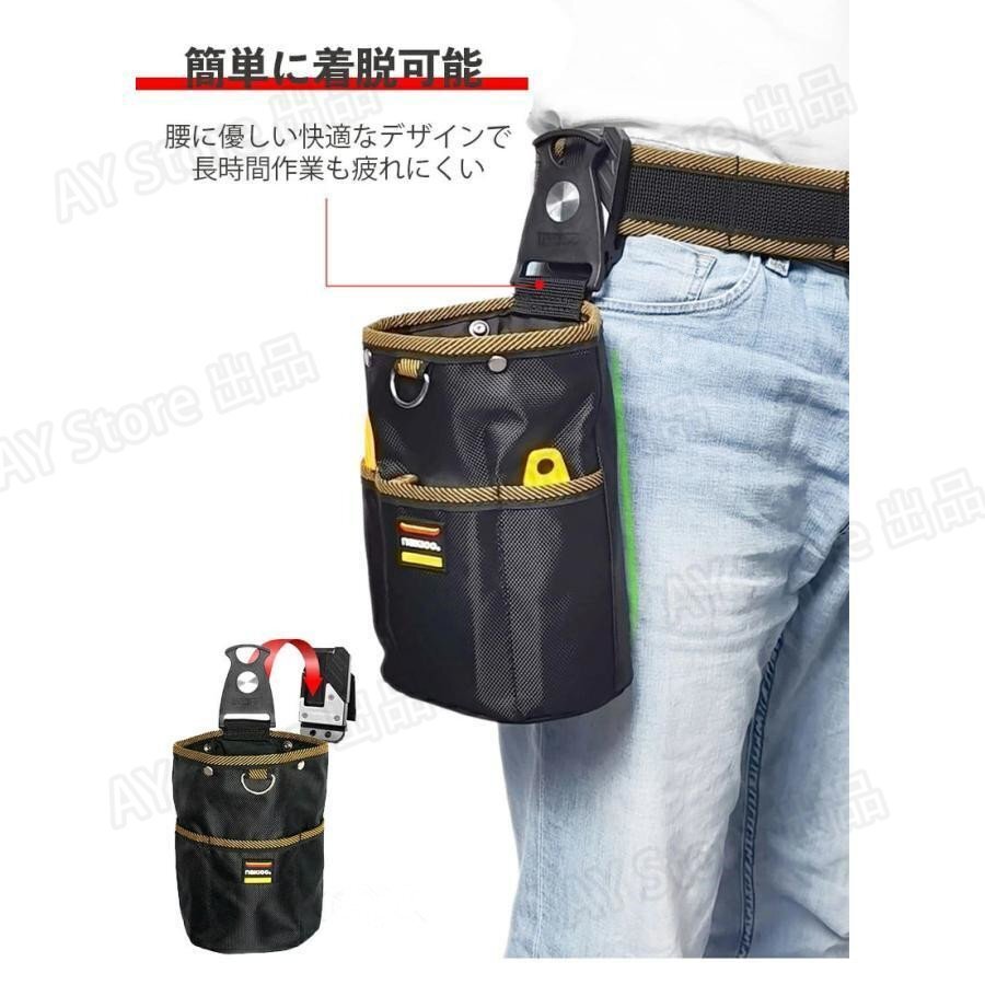 腰袋 釘袋 2段 バネ式開閉 着脱式工具ホルダー付き着脱楽々 ベルトに装着可能 ウエスト工具ポーチ ビスケース 小物入れ 高密度ナイロン素材