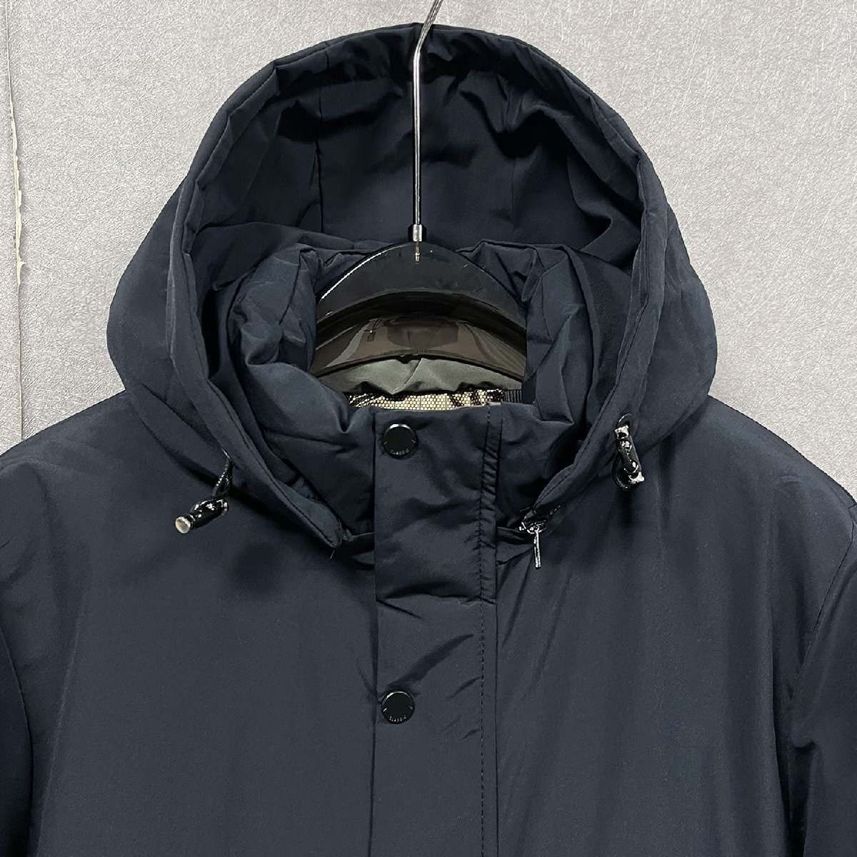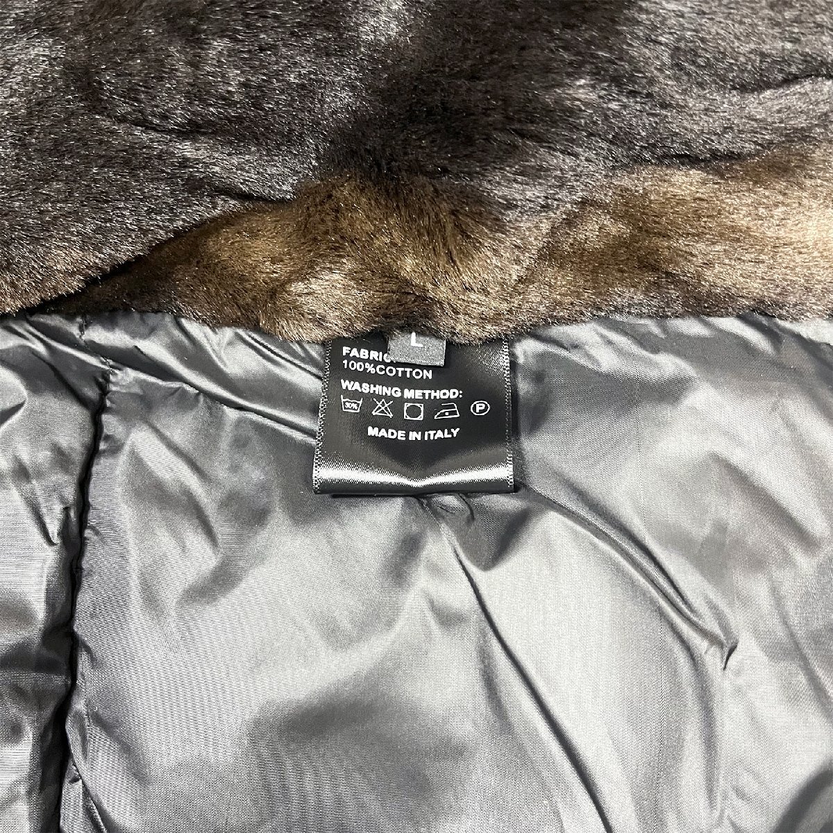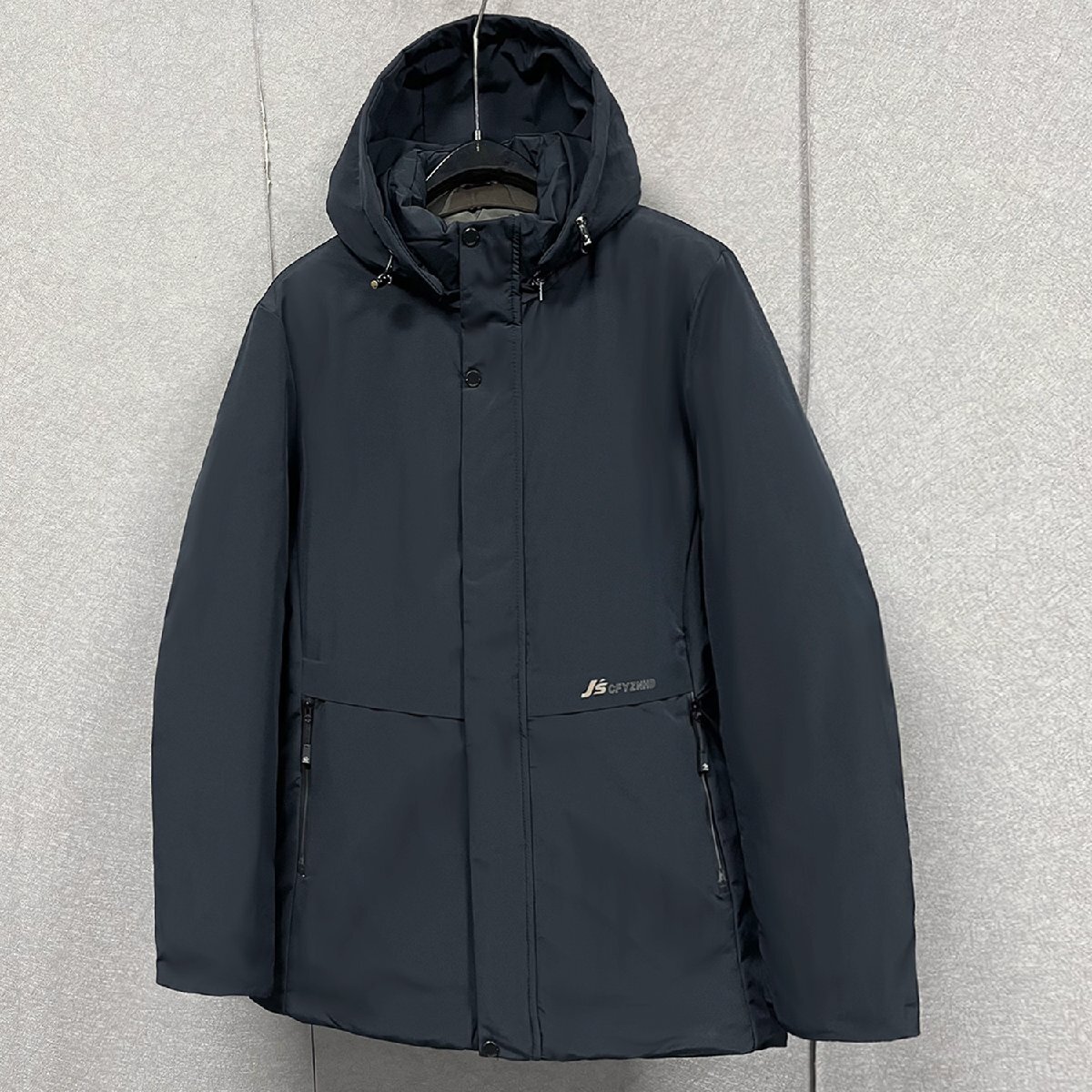 中綿ジャケット イタリア製造 コットン100% 裏起毛 ソフト 保温 フード付き 無地 ビジネス フォーマル カジュアル 日常 通勤 冬 SIZE:L