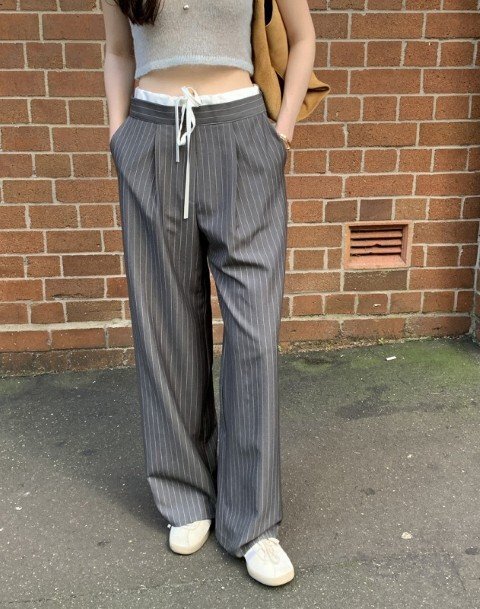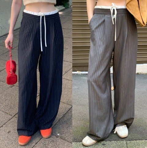 ワイド バギーパンツ 切り替え バイカラー 体型カバー 着痩せ ストライプ柄 S ロイヤルブルー
