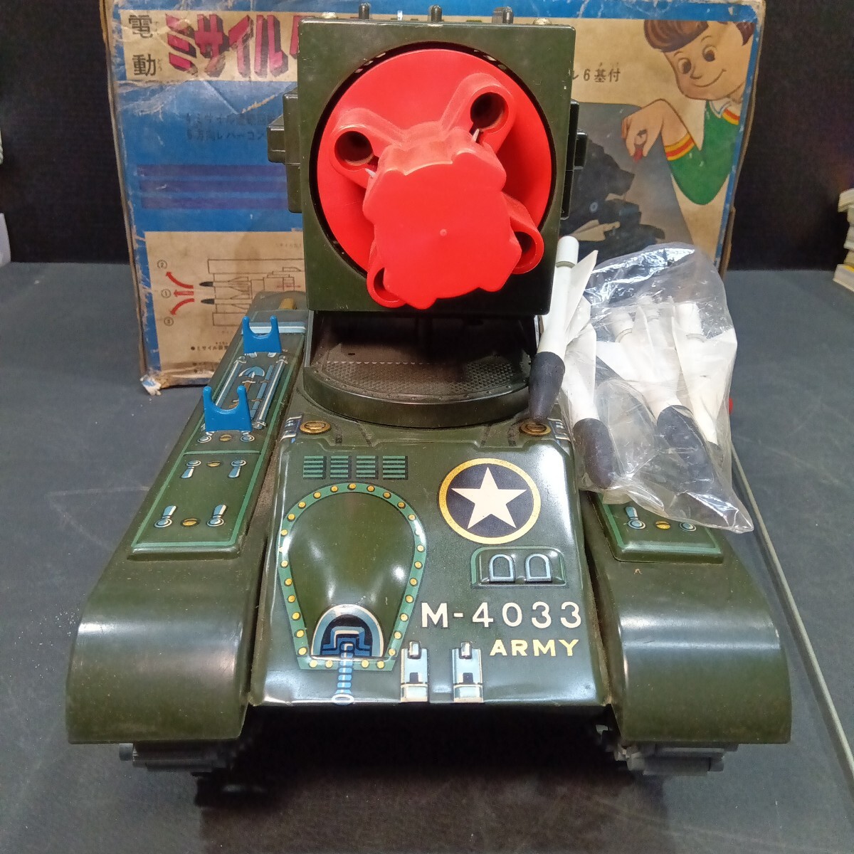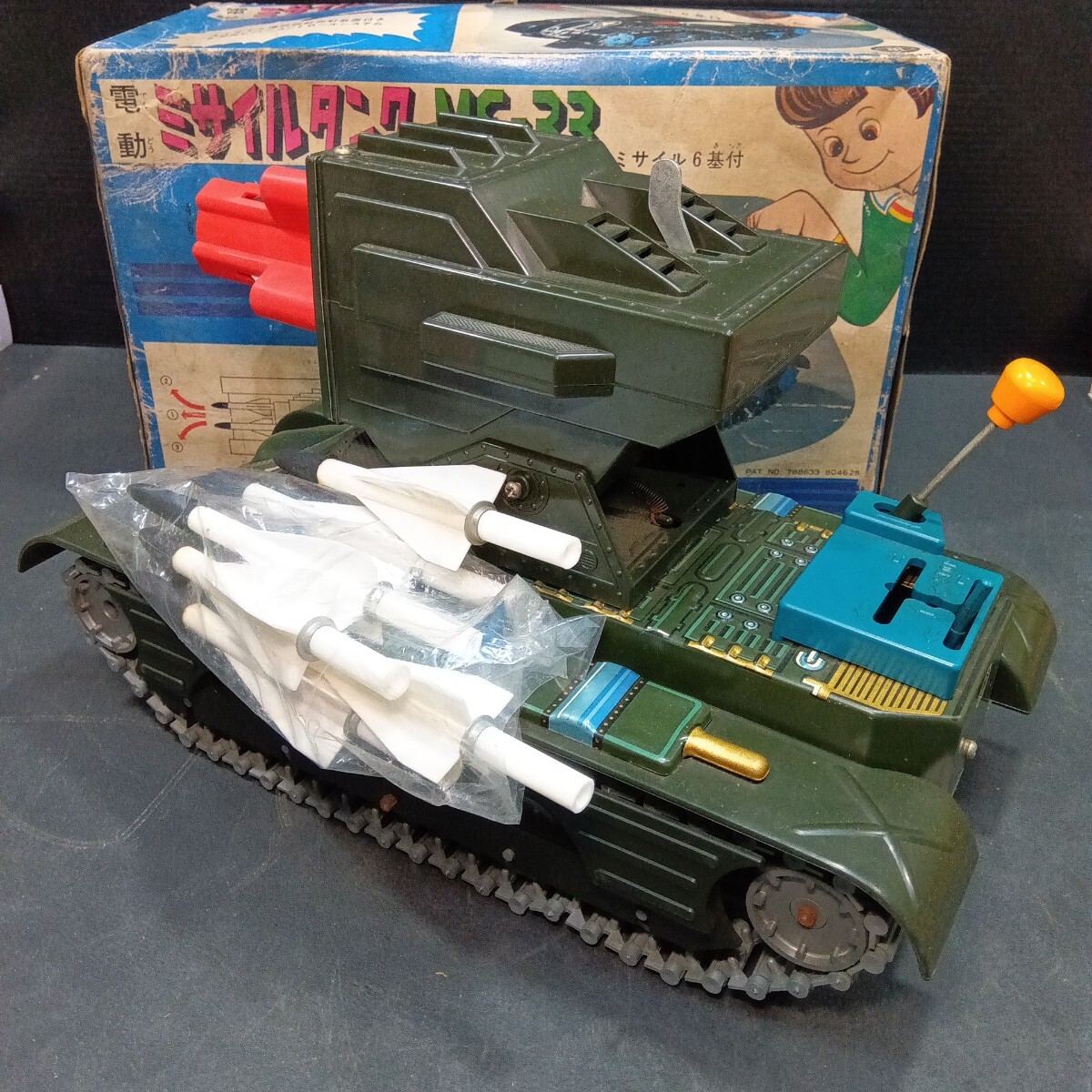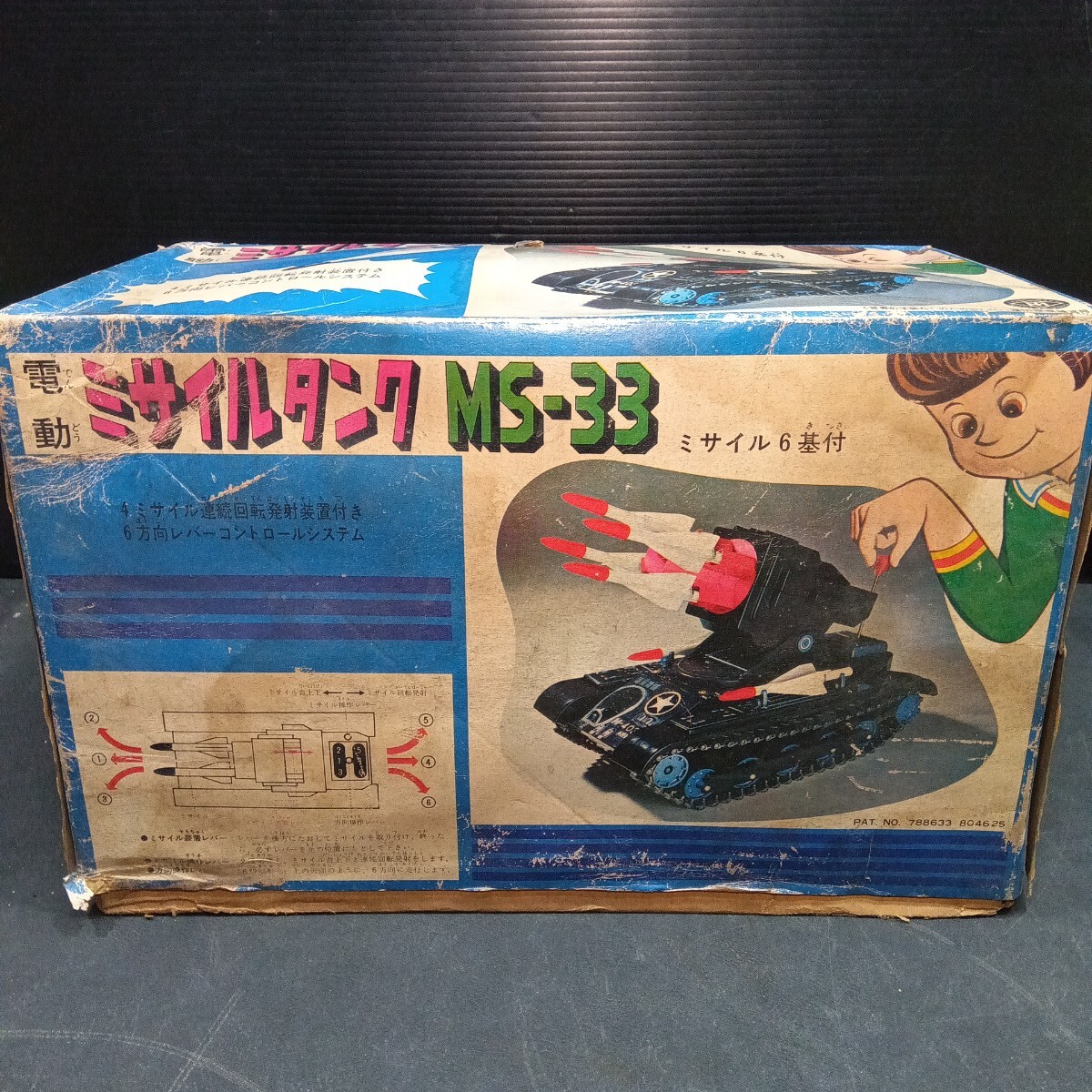 動作未確認 箱入 電動 ミサイルタンク MS-33 マスダヤ 増田屋 ブリキ プラ 昭和レトロ ビンテージ 箱汚れ、破れ有り