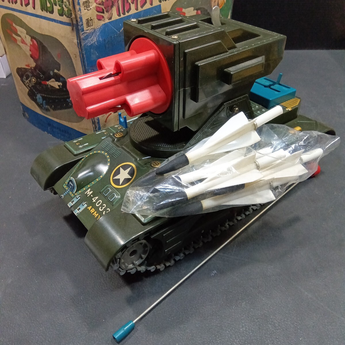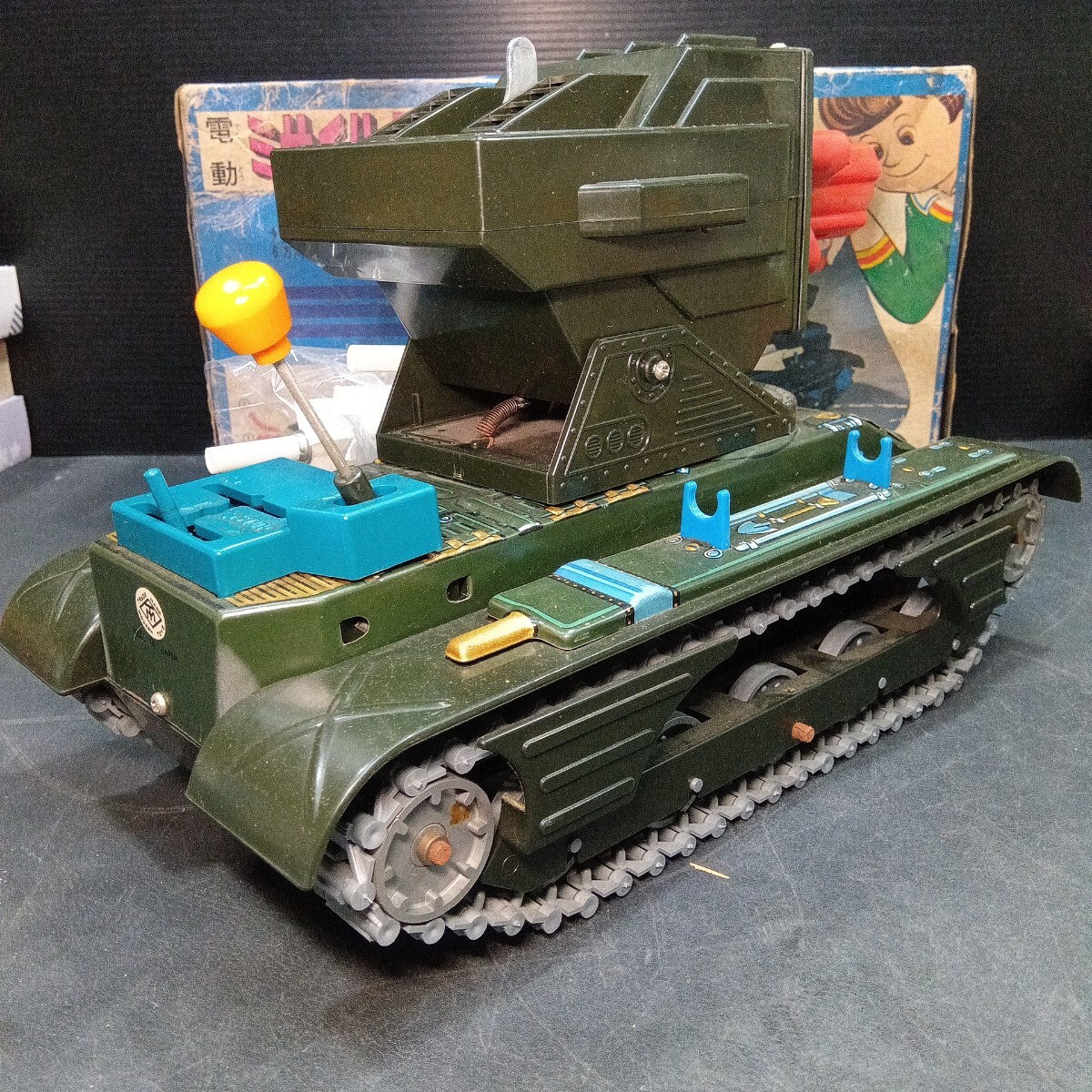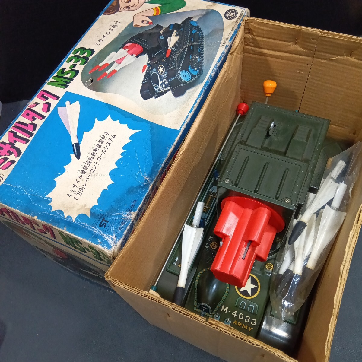 動作未確認 箱入 電動 ミサイルタンク MS-33 マスダヤ 増田屋 ブリキ プラ 昭和レトロ ビンテージ 箱汚れ、破れ有り