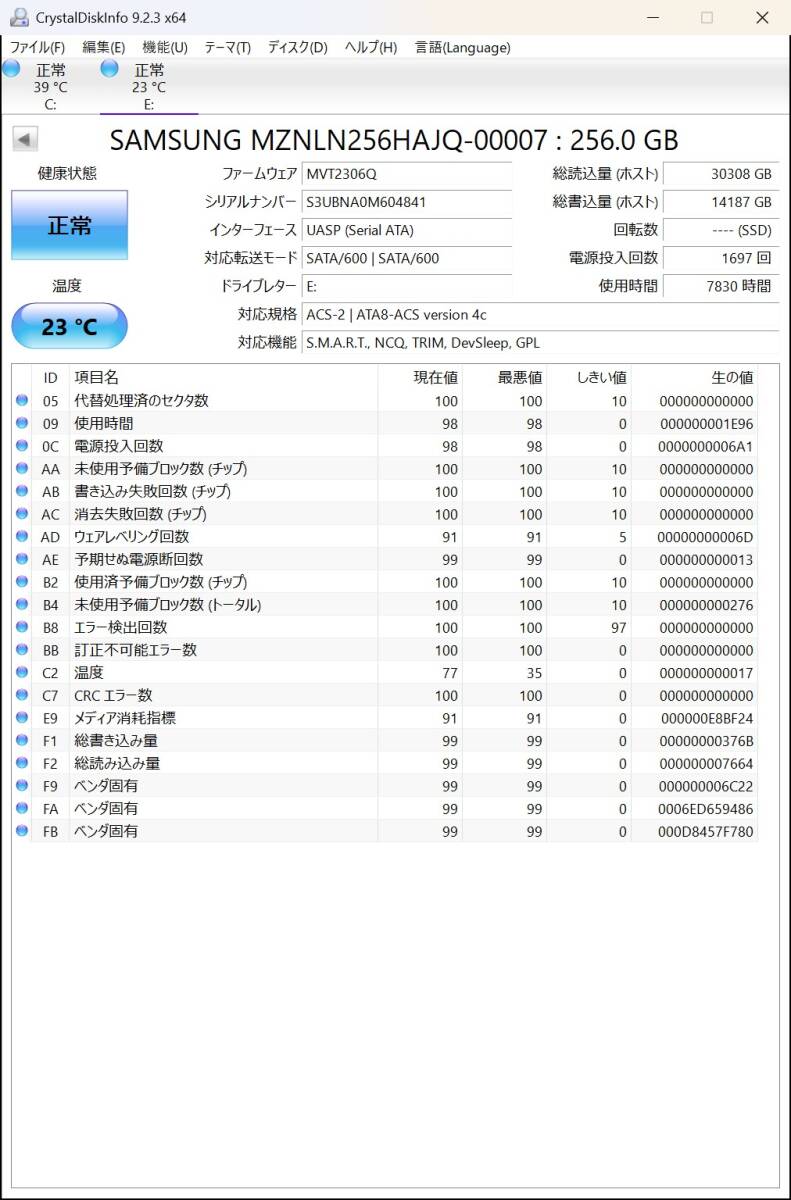| ★☆1円 ~スタート☆Samsung SSD PM871b M.2 2280 MZ-NLN256C 256GB 使用時間:7830H☆★ | |