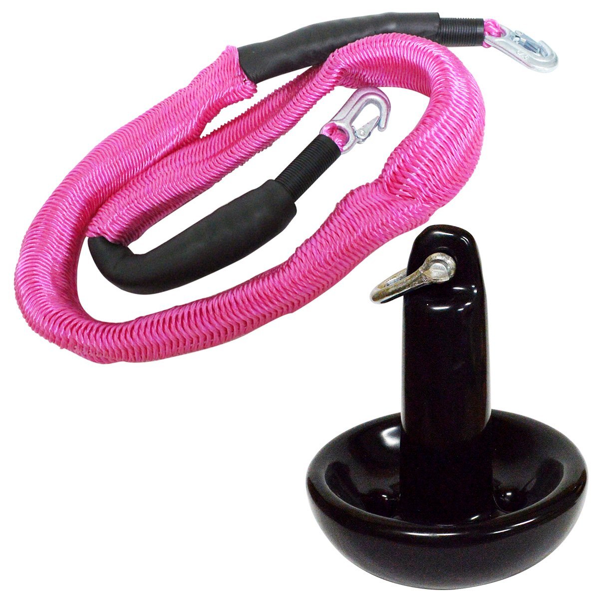 【新品即納】『伸縮ロープ/アンカーセット』マッシュルームアンカー 8LBS 3.5kg 黒 ブラック 6M フロート のびのび アンカー ロープ ピンク