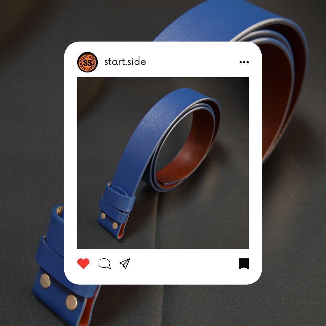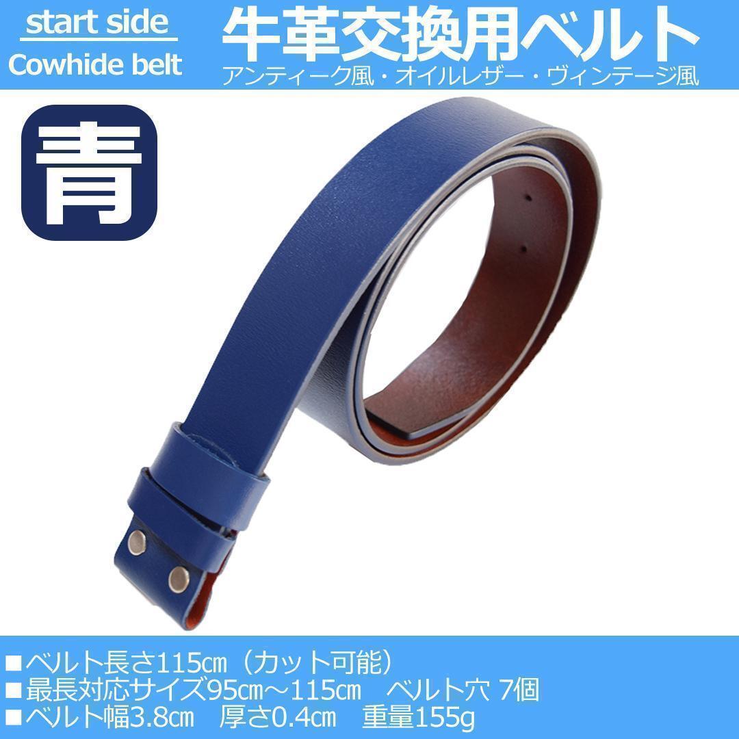 ◆新品/送料無料◆ 牛革 交換用 ベルト ベルトバックルタイプ メンズ レディース ビンテージ アメリカン 115㎝ 青ブルー
