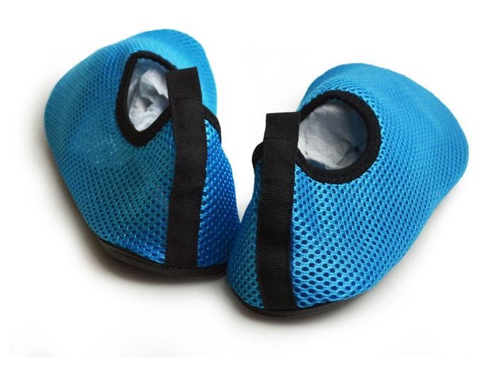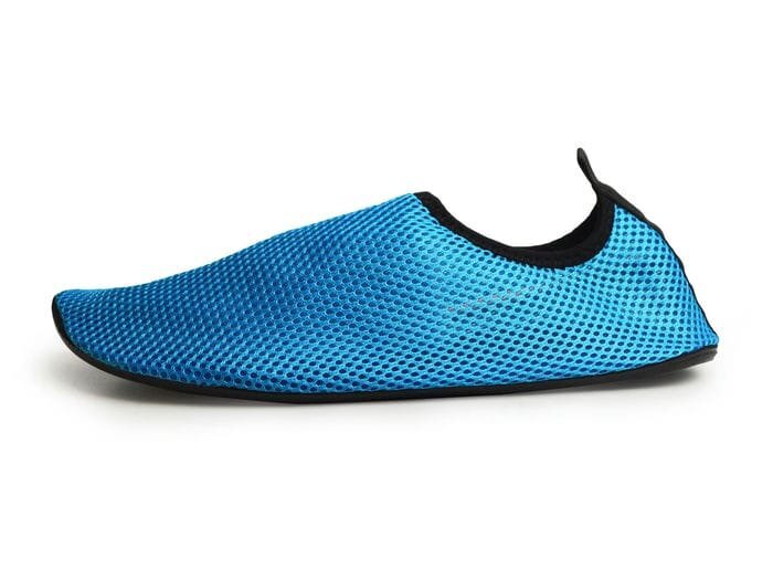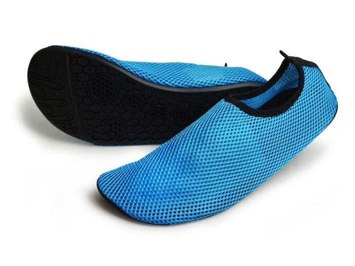 太陽で熱くなった砂浜や尖った貝殻などから足を守るアクアシューズ。