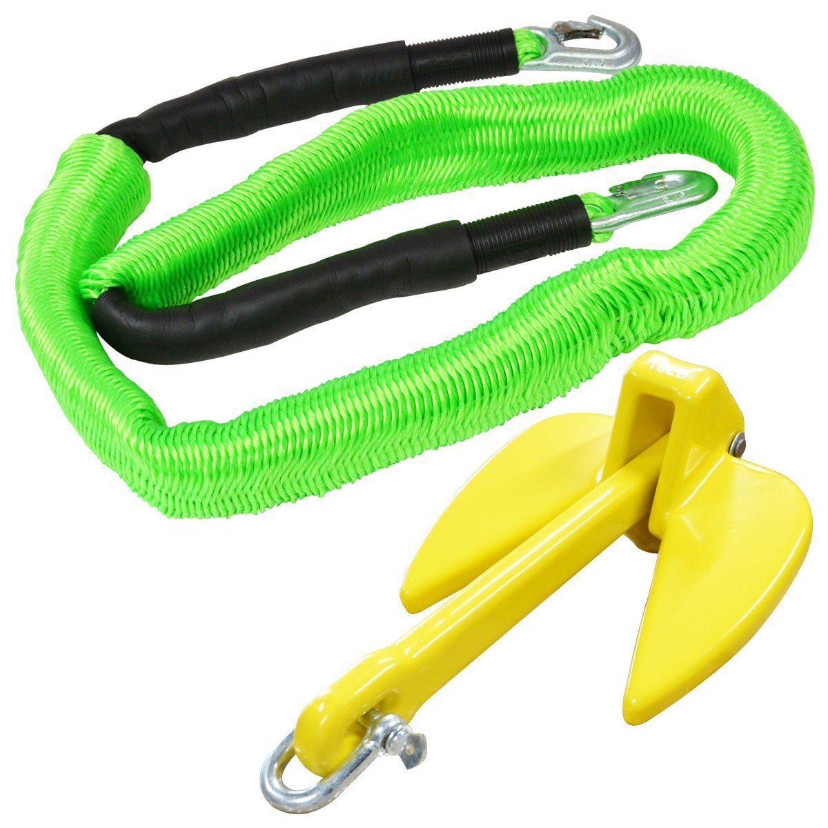 【新品即納】『伸縮ロープ/アンカーセット』ジェットスキー 爪型 アンカー 10LBS 4.5kg 黄色 6M フロート のびのび アンカー ロープ 緑