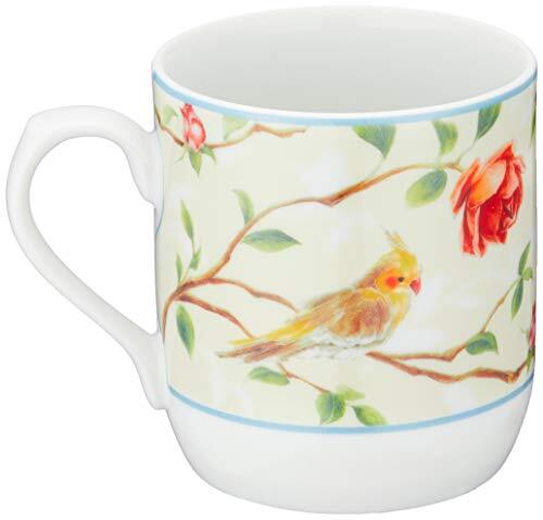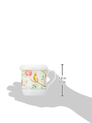 NARUMI(ナルミ) フタ付 マグカップ インコとバラ 290cc かわいい 茶こし付 蓋付きマグカップ プレゼント 陶器 電子レンジ温め対応