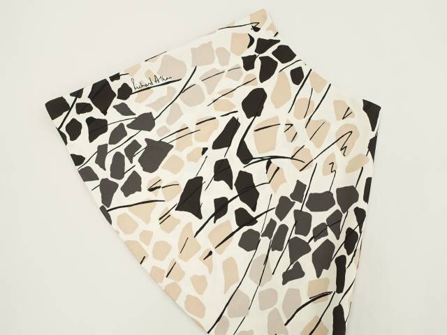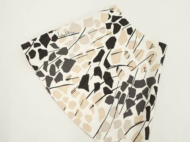 ひざ丈 洗えるフレアスカート アイボリー地 ブラック×ダスティピンク×ベージュ 総柄&英字