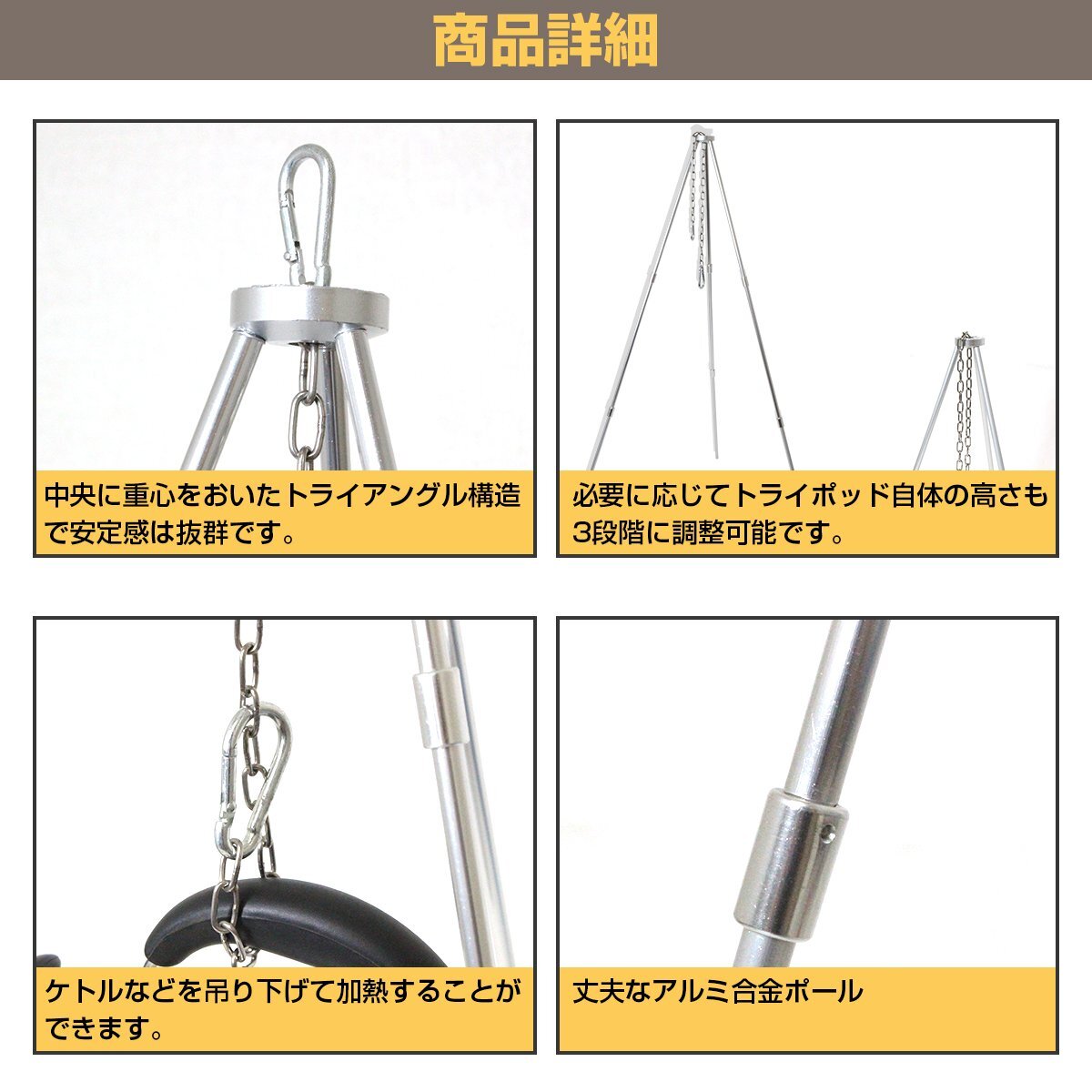 【新品即納】焚火 トライポッド BBQ 鍋 湯沸かし 吊り下げ 簡易コンロ 焚火 飯盒 ダッチオーブン 三脚 グランピング 火起こし キャンプ
