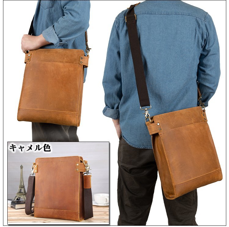 TIDING シンプル便利 本革 メンズ メッセンジャーバッグ 斜め掛けバッグ 厚手牛革 経年変化 自転車鞄 A4対応 キャメル 潮牛