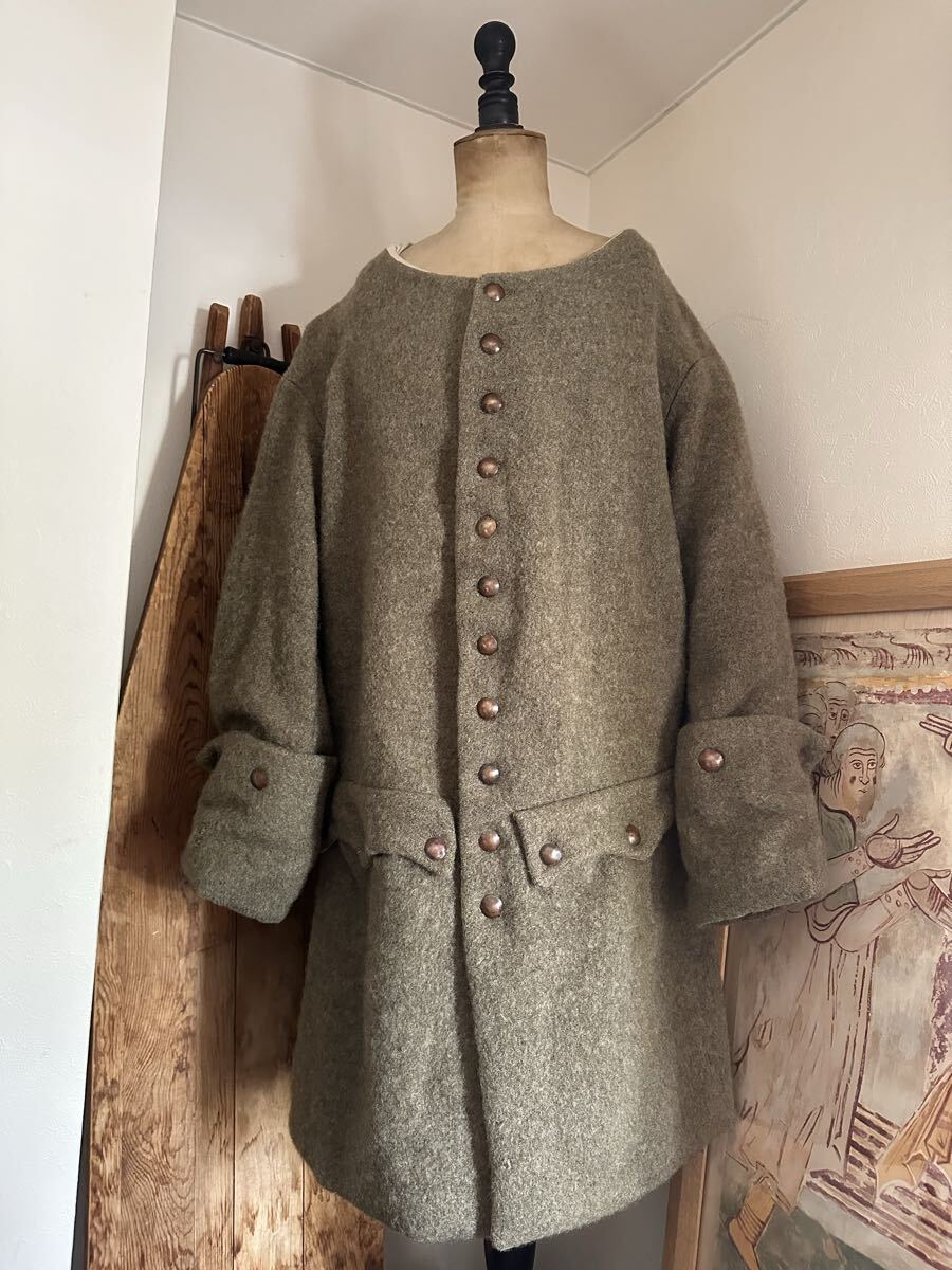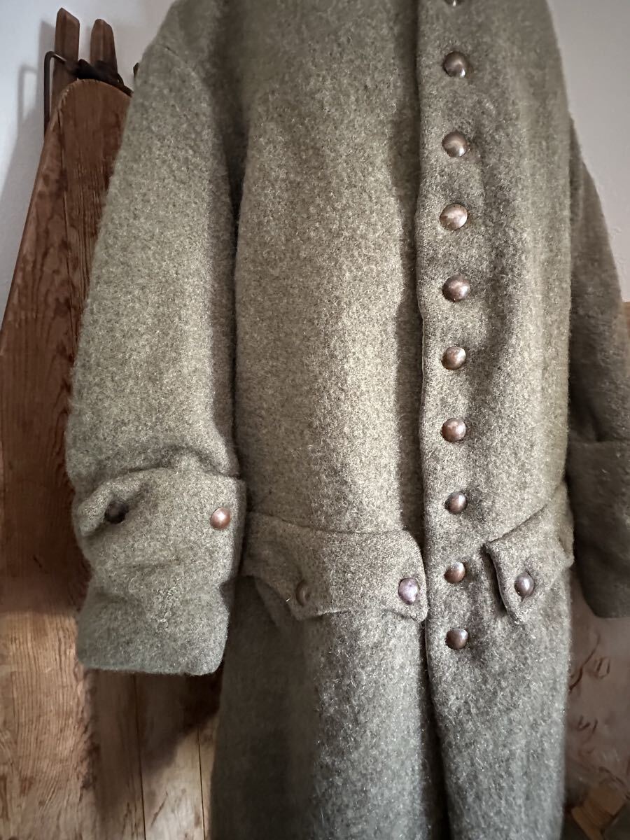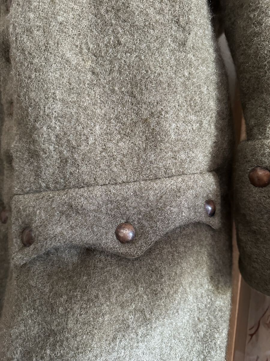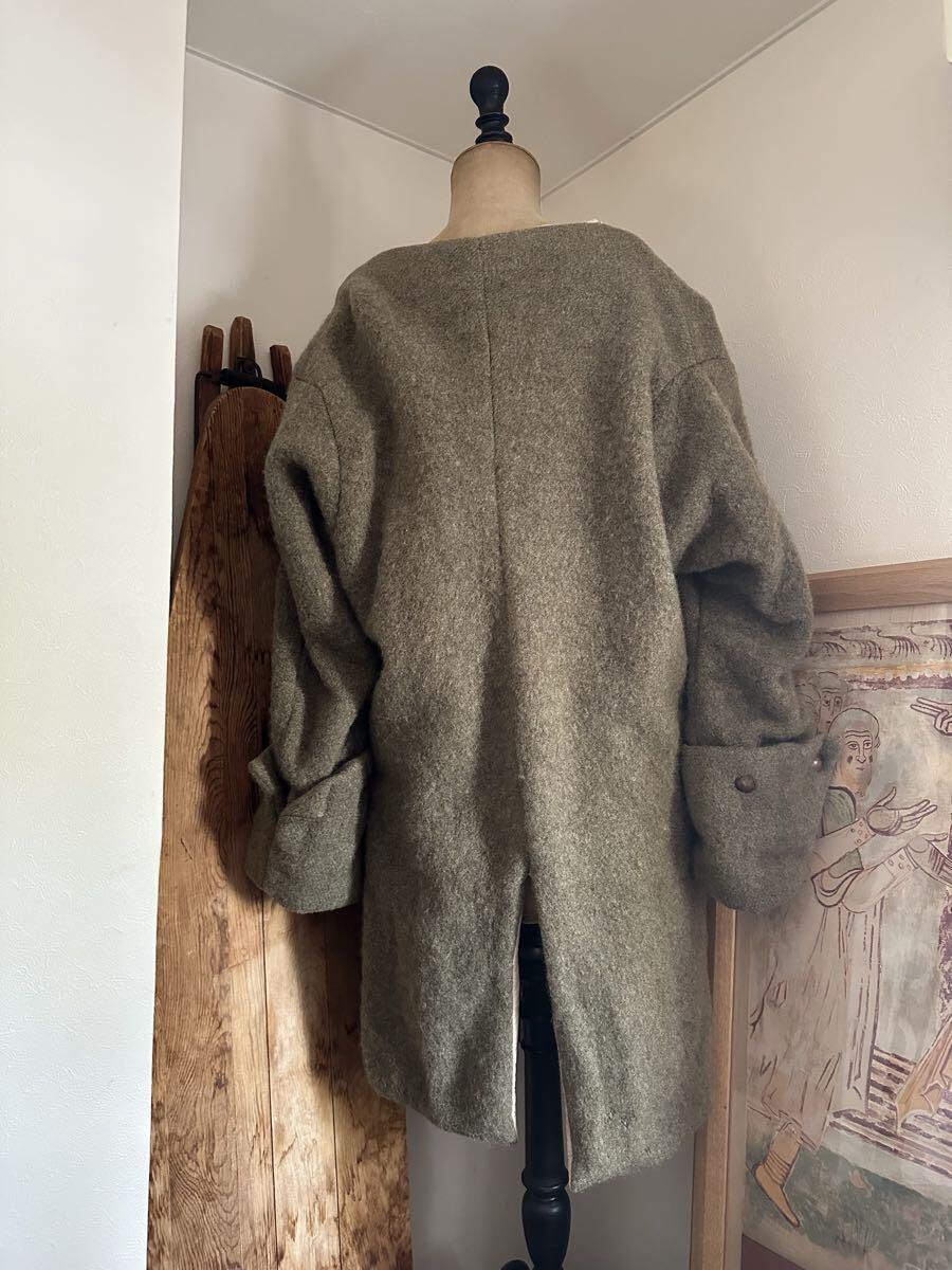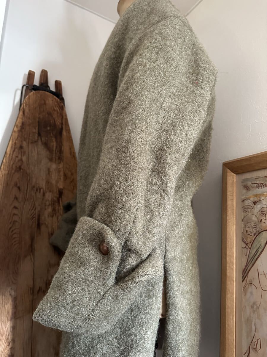 古い時代のスウェーデン軍コート(例:M39/M40)のディテールを踏襲している可能性があり、1900年代〜1920年代頃に製造された希少な実物ではないかと推測されます。コレクターアイテムとしてだけでなく、現代のファッションに溶け込む唯一無二のヴィンテージコートをお探しの方に最適です。