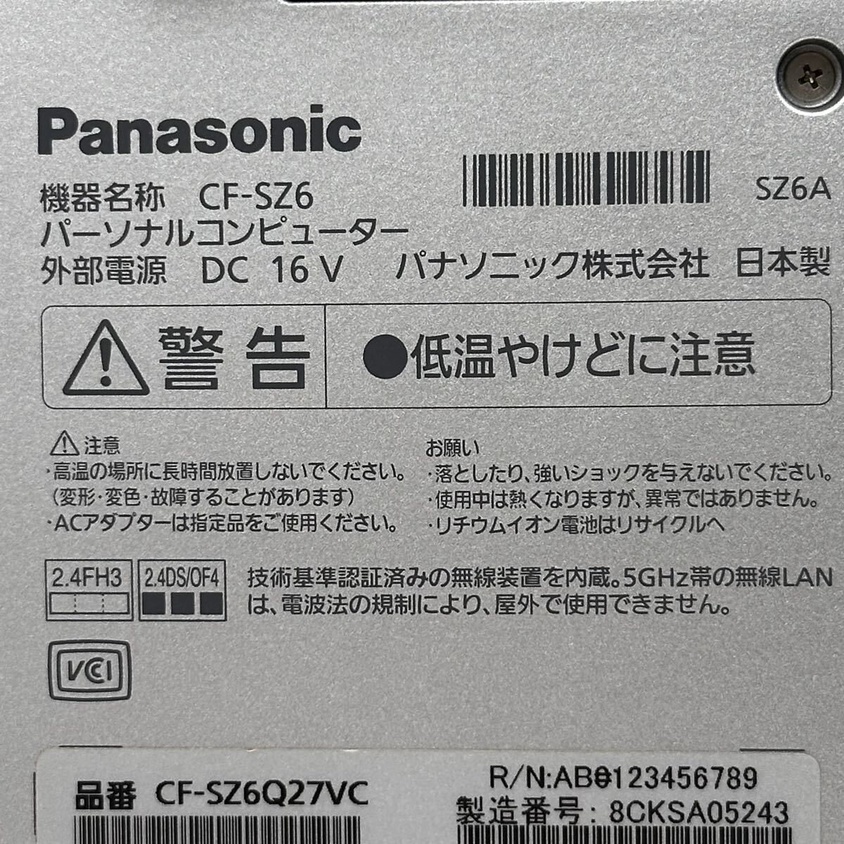 *Panasonic Let’s note CF-SZ6Q27VC Core i5 SSD メモリ搭載 初期化済 美品 AC付 状態写真参照 直接引き取り大歓迎 レッツノートになります。