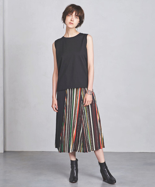 マルチカラーが映える、ボーダー柄のプリーツスカート。