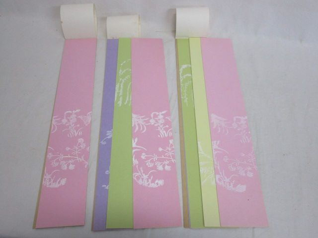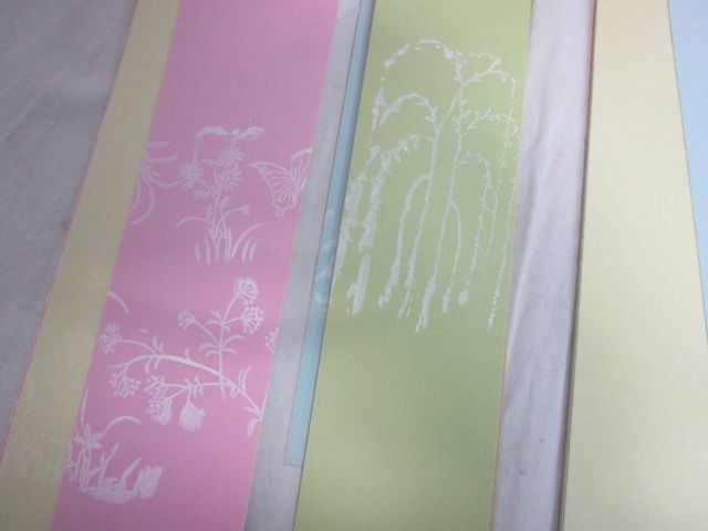 お稽古用 短冊 10枚綴り×3束 計30枚 です。 ピンク、水色、黄色、緑、紫で計5色です。 やわらかい色調です。 表面、裏面ともに、目立ったシミ、折れなどもなく、 状態は★良好★です。 10枚綴り計3束、合計30枚ですが、 撮影時に台紙から糊付けが剥がれてしまいました。 また長期保存品のため、綴り表裏にシミが少しでています。 中身の短冊はきれいです。 ※多少の古さや使用感、見落としによる小さなシミ、シワ、角折れ等々・・・ 古さ特有の経年劣化が気になるようでしたら、ご入札を差し控えて頂くか、 早めのご質問にて、ご理解・ご了承お願い致します。 ※パソコンやスマホなどご覧いただく環境によって、色合いや素材など現品と 異なる場合がございますので、ご注意ください。 |