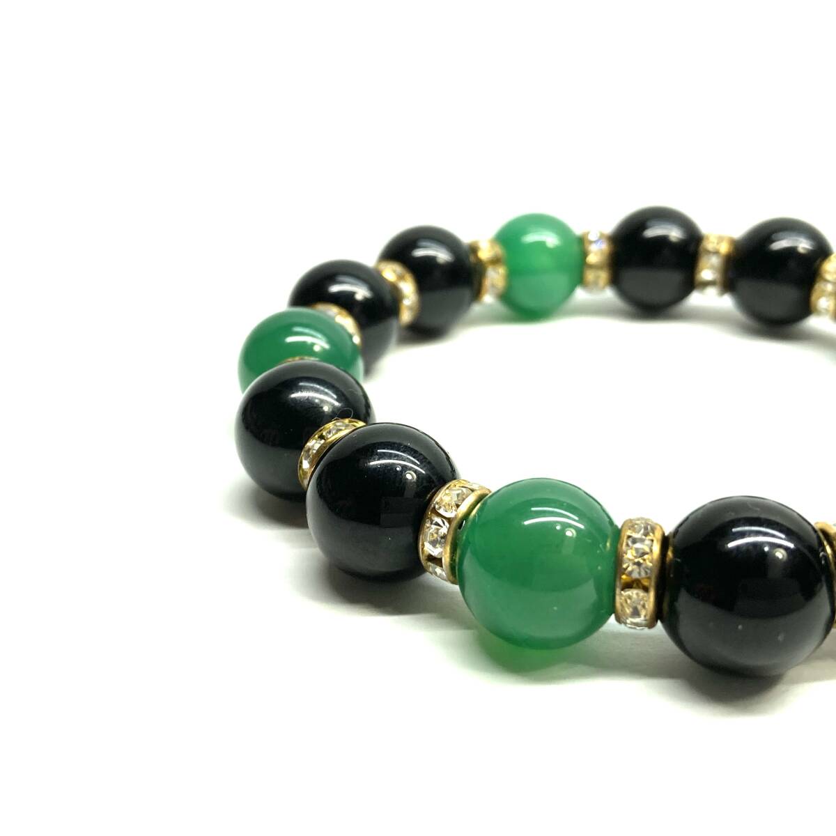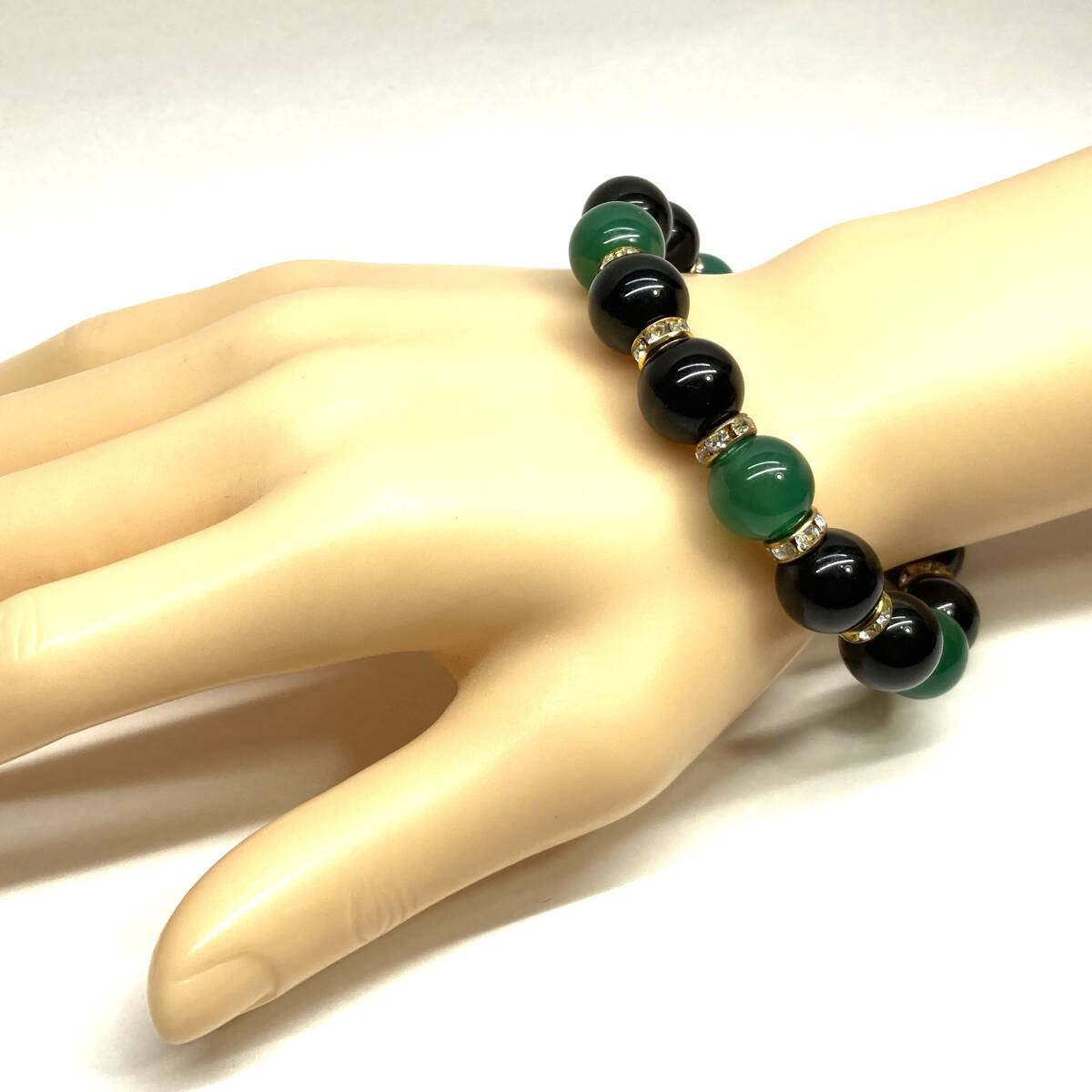こちらは、モリオンと緑瑪瑙を組み合わせたパワーストーンブレスレットです。間にはロンデルを挟み高級感あるデザインに仕上げております。程よくインパクトがある12mm玉を使用して内周約18cmです。(サイズ変更の場合は取引ナビにてご連絡をお願いします。) 数に限りがございますので気になる方はお早めにどうぞ。