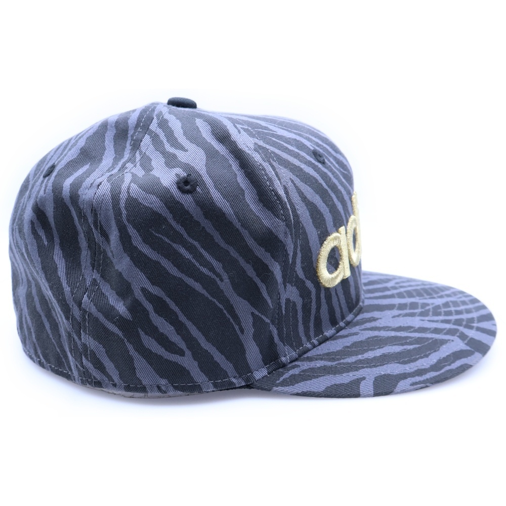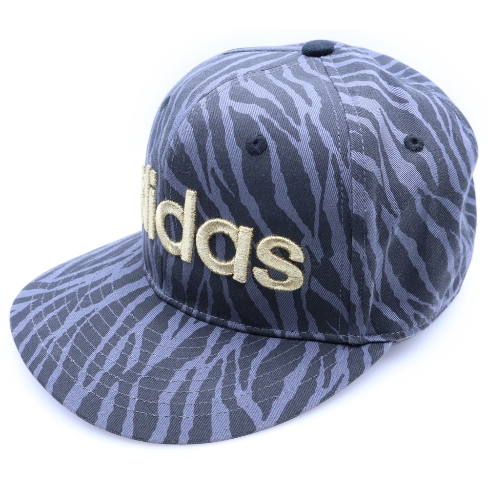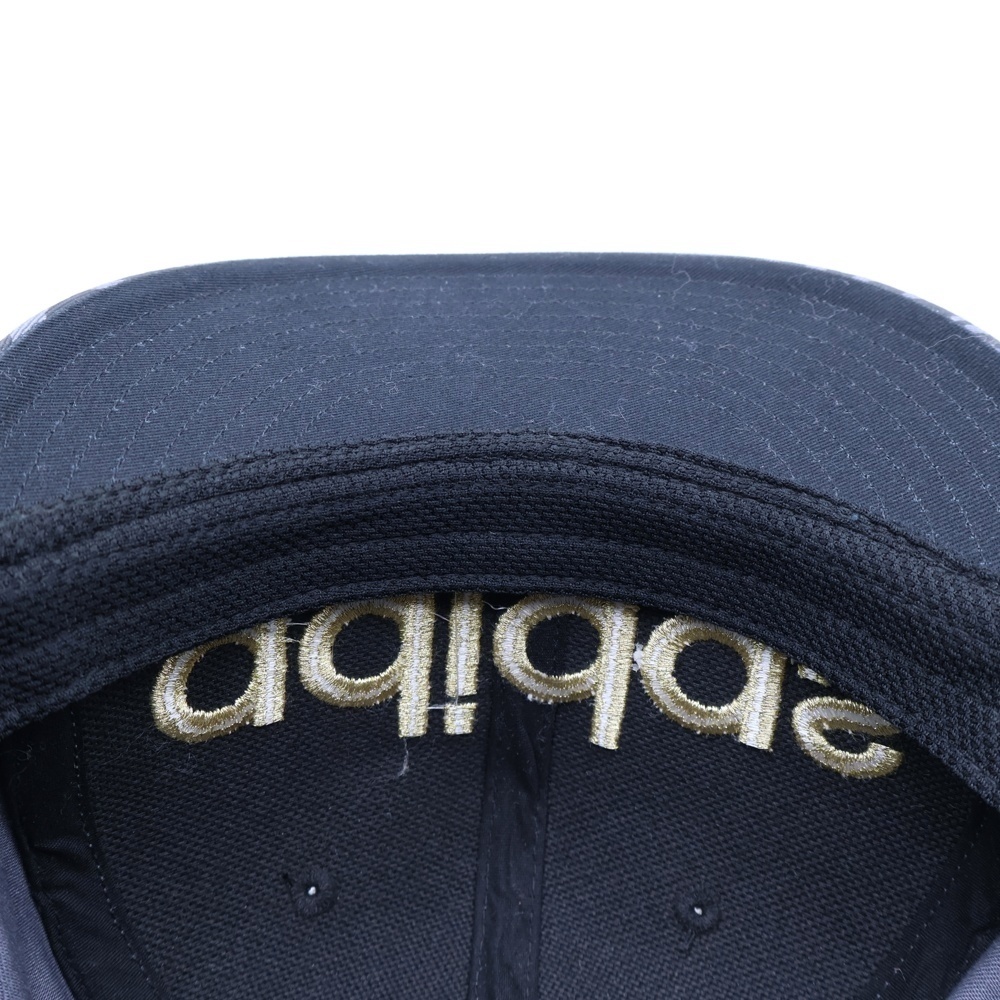 adidas アディダス ロゴ刺繍 総柄 ベースボールキャップ 帽子 ブラック/ゴールド