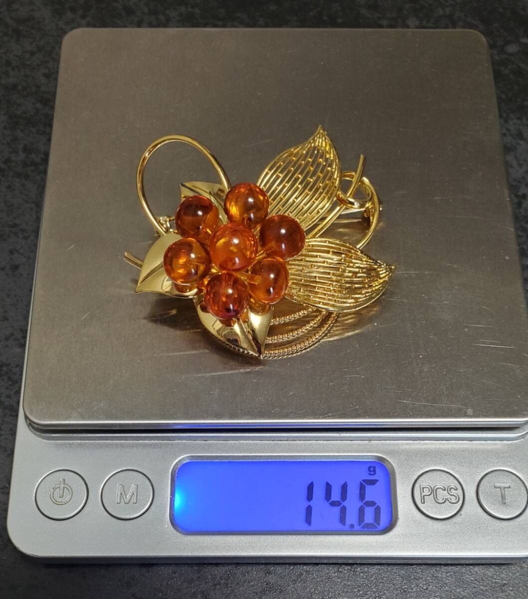 ゴージャス 琥珀 コハク ブローチ ゴールドカラー レディース アクセサリー 14,6g 美品