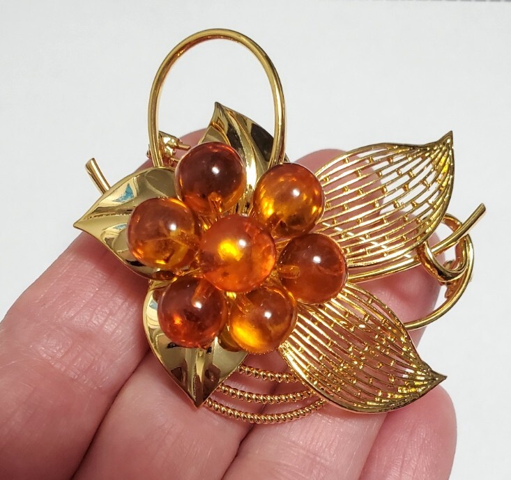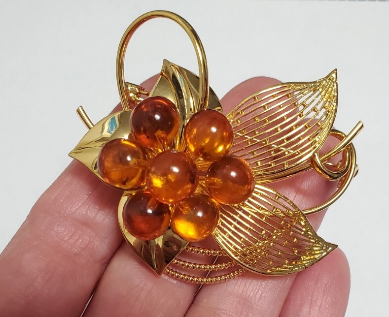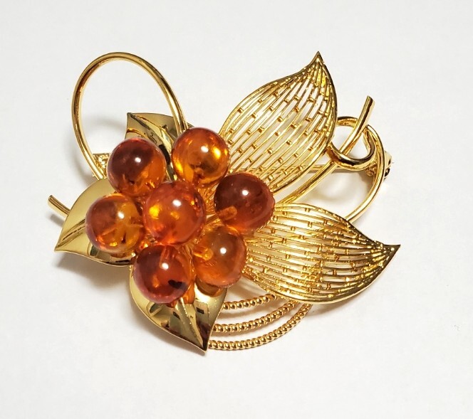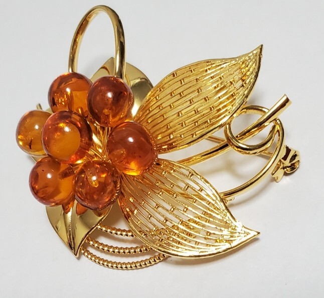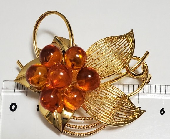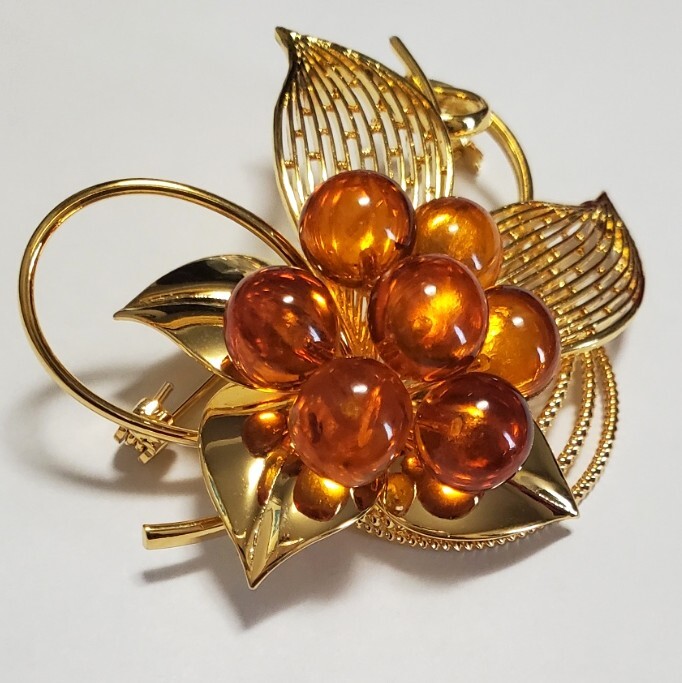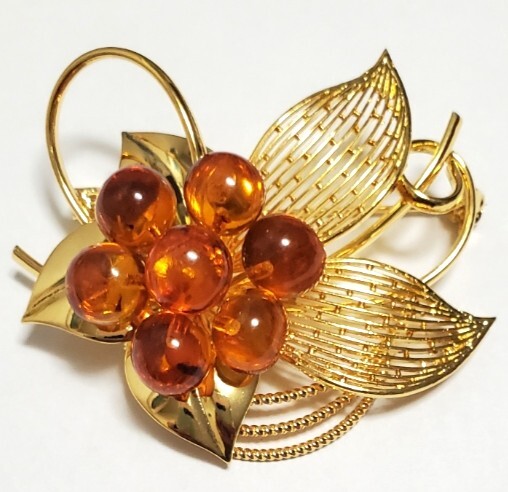 ゴージャス 琥珀 コハク ブローチ ゴールドカラー レディース アクセサリー 14,6g 美品