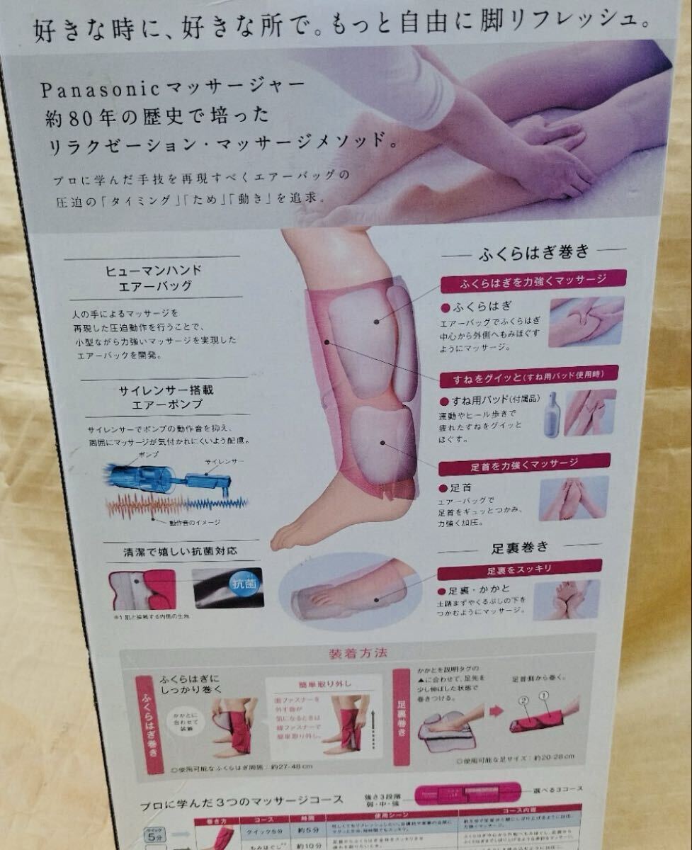 ★パナソニック エアーマッサージャー レッグリフレ 足首~ふくらはぎ 3コース コードレス ピンク EW-RA38-P