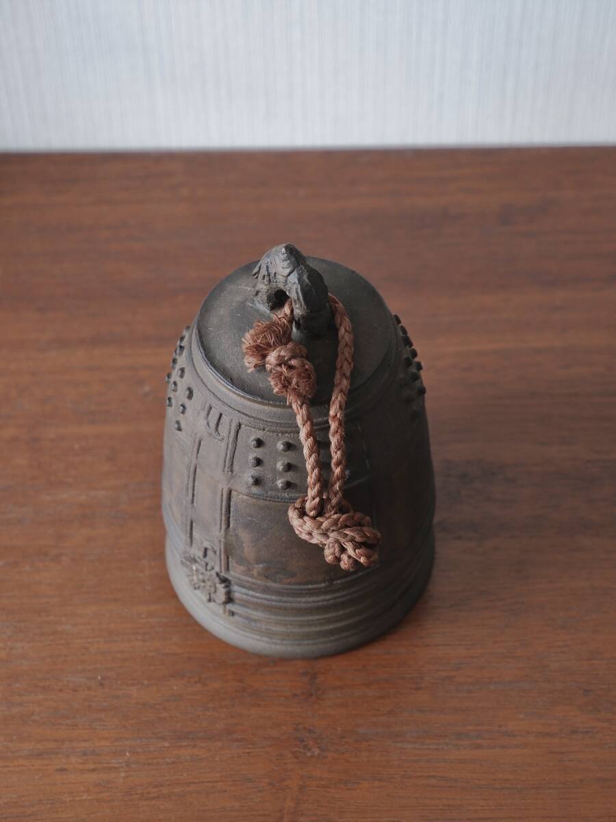 【青枠】唐銅 喚鐘 釣鐘 半鐘 銅製 637.5g 金属工芸 古道具 時代物 美術品Q2131