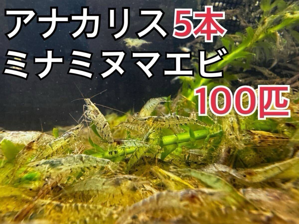 送料無料 アナカリス 5本とミナミヌマエビ100匹淡水エビ 川エビ 水草 メダカ 商品説明必読