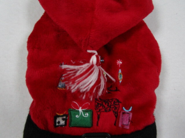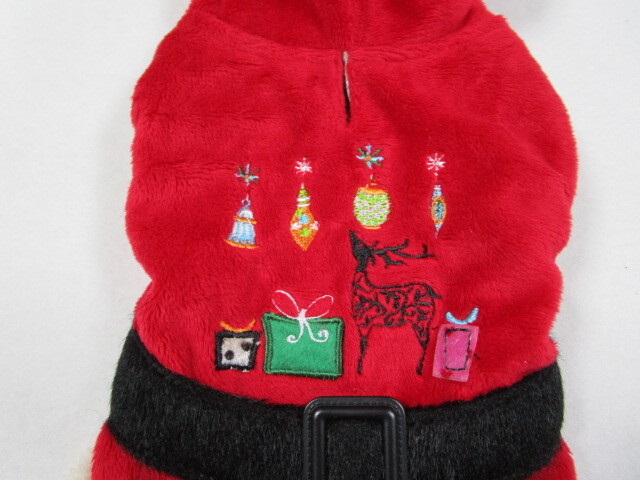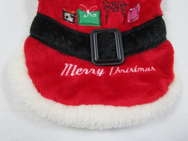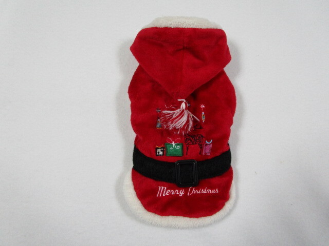 ペットウェア 1号 胴回り28cm merry Christmas ファーパーカー レッド 中古