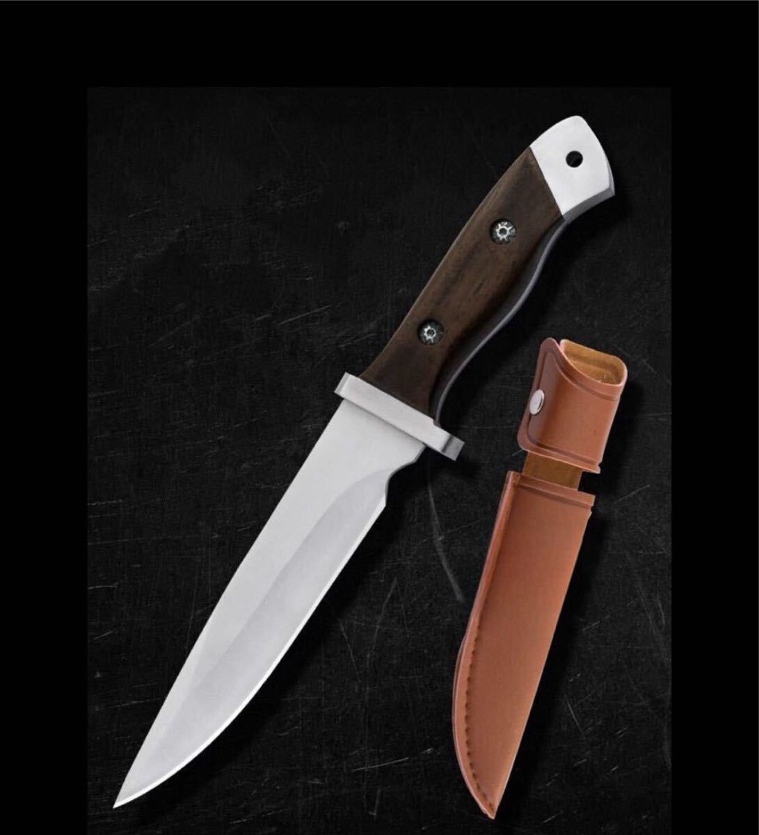 シンプルながらも力強いデザインで、ブレードの厚みと木製ハンドルが特徴的です。