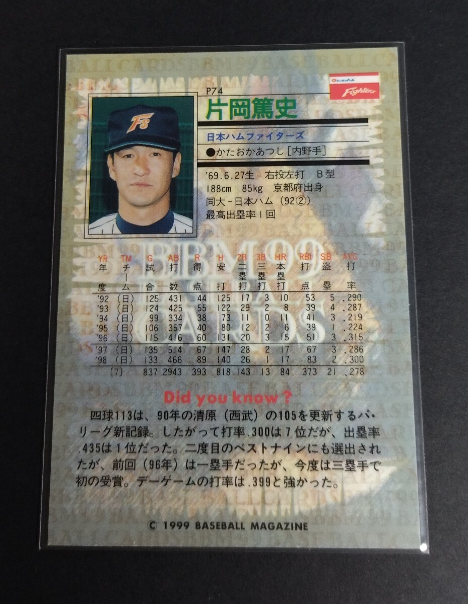 1999年BBM プレビュー版 片岡篤史(日本ハム)サインパラレル。No,P74。