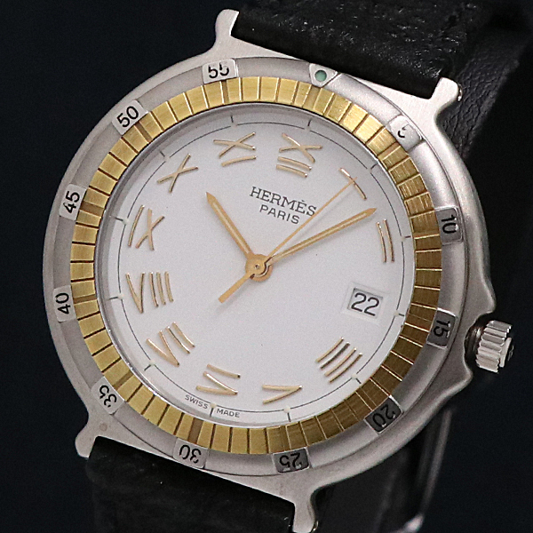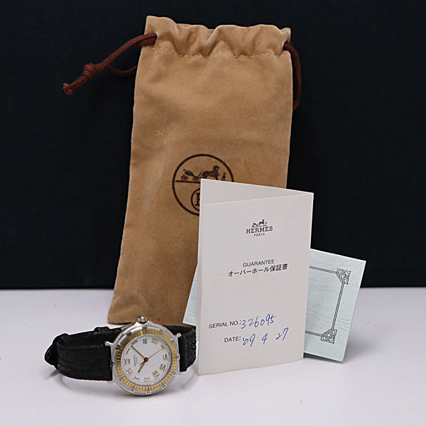 1円 OH証明付 稼働 良品 エルメス ホワイト文字盤 QZ キャプテンニモ メンズ/レディース腕時計 0089100 11RKT KMR