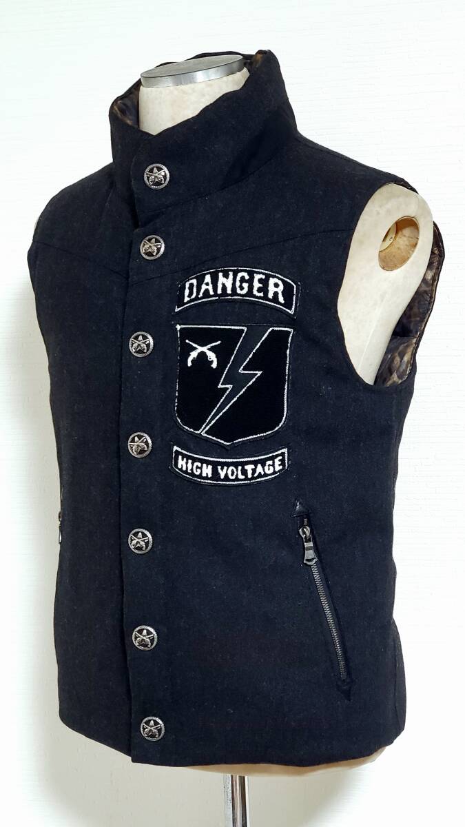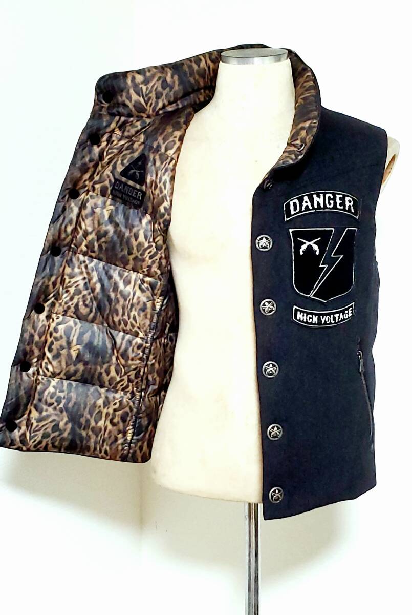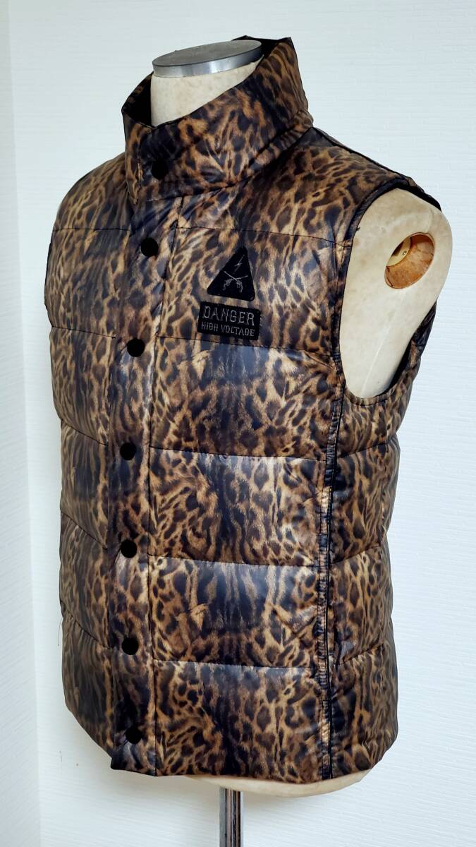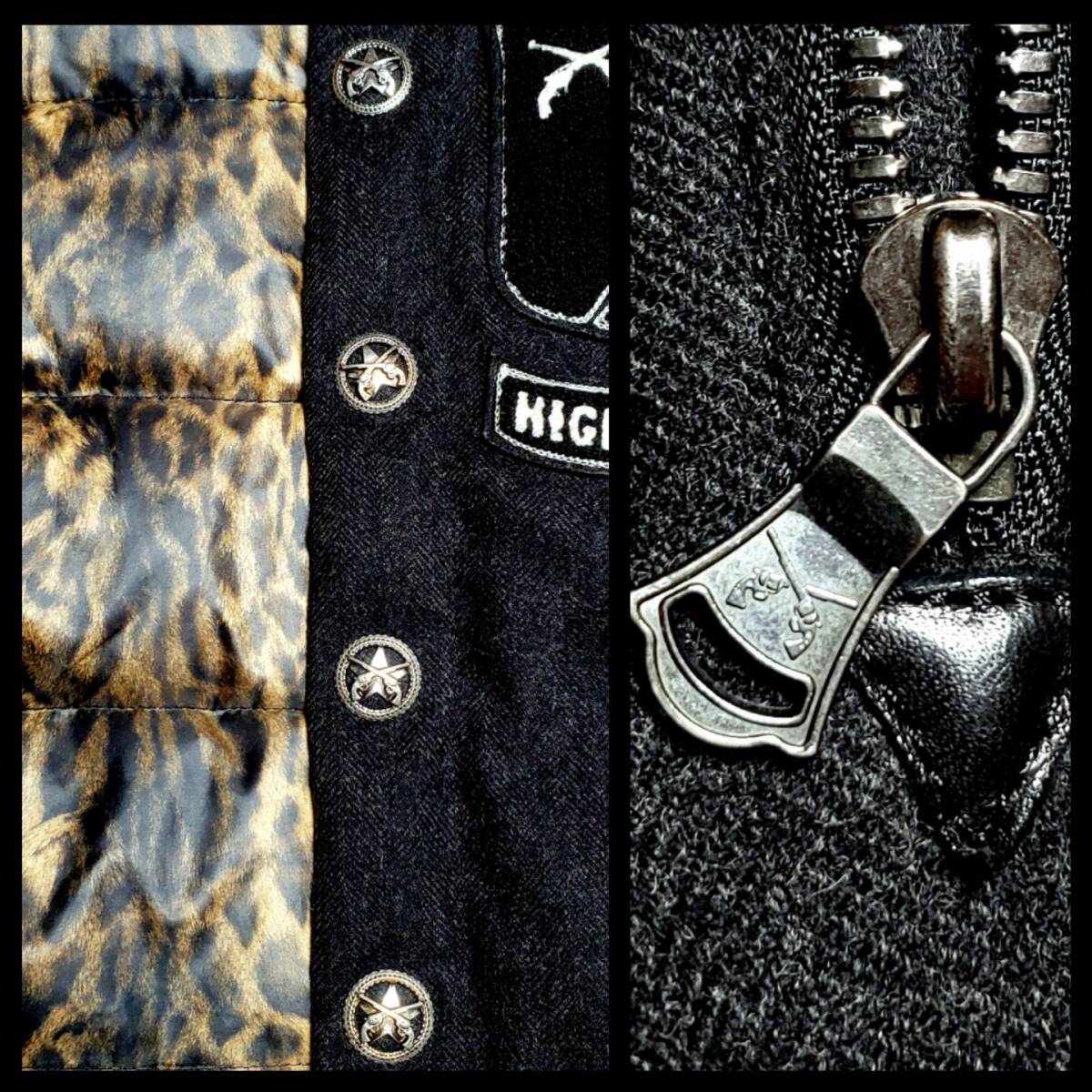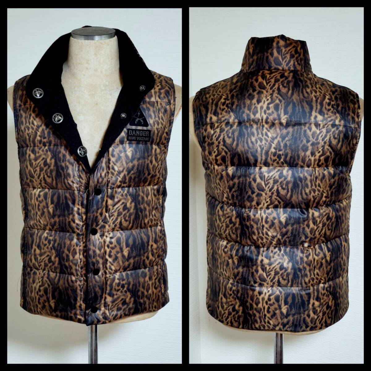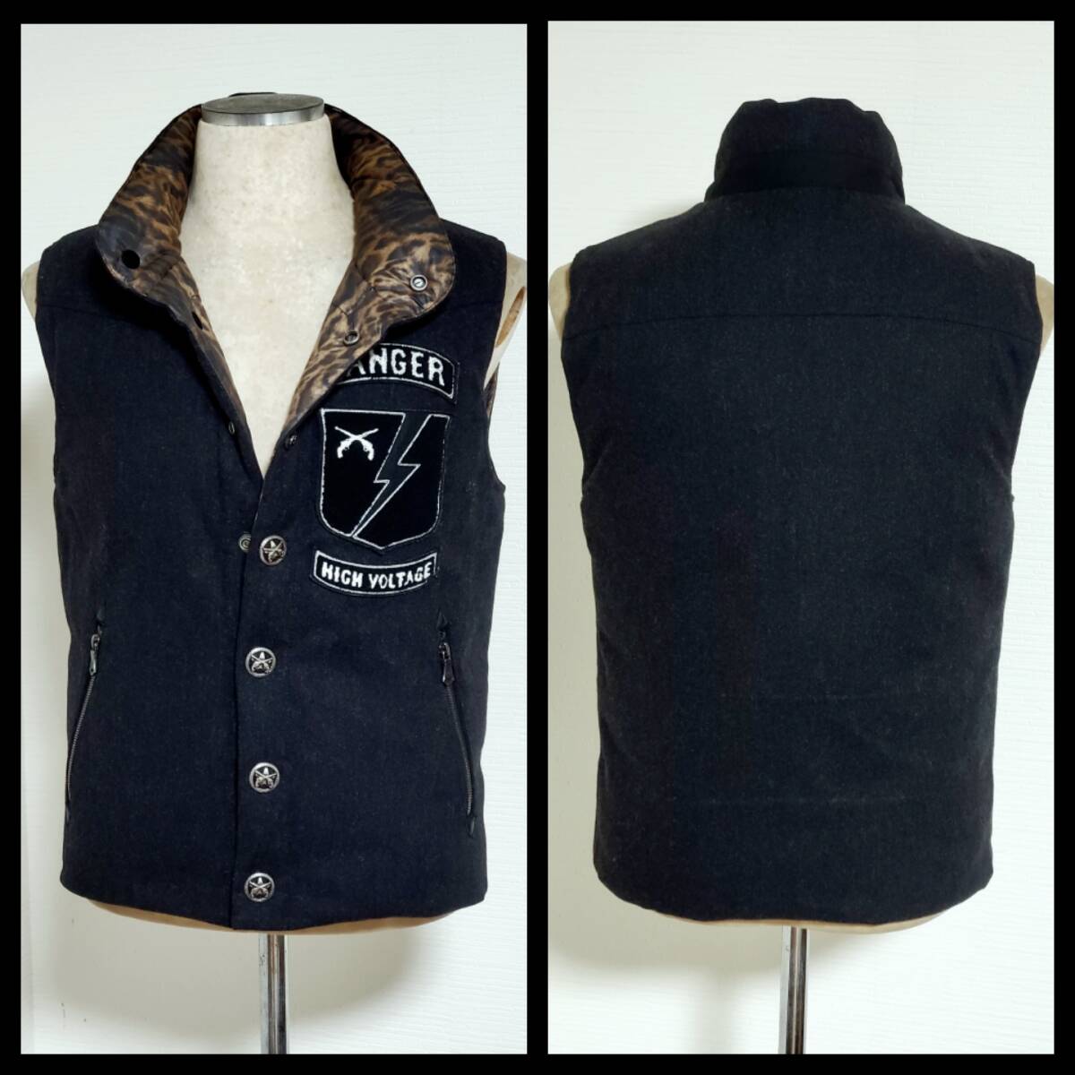 SENSE掲載86100円roar日本製羽毛リバーシブルダウンベスト2丁拳銃コンチョ&ピストルワッペン付きレオパード柄グースダウンジャケットroen