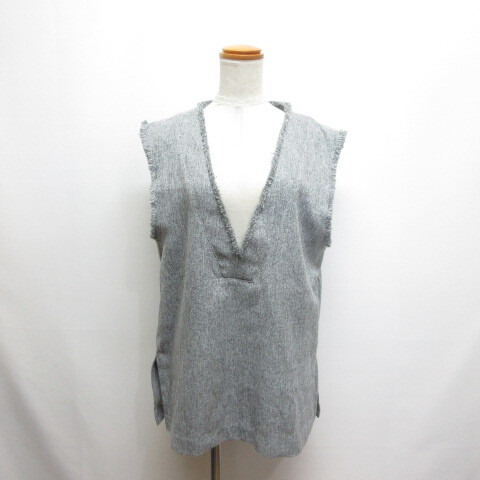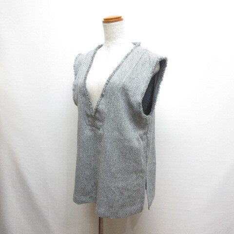 センスオブプレイス バイ アーバンリサーチ Sense of Place by Urban Research ツイード Vネック フリンジ ジレ ベスト ONESIZE グレー