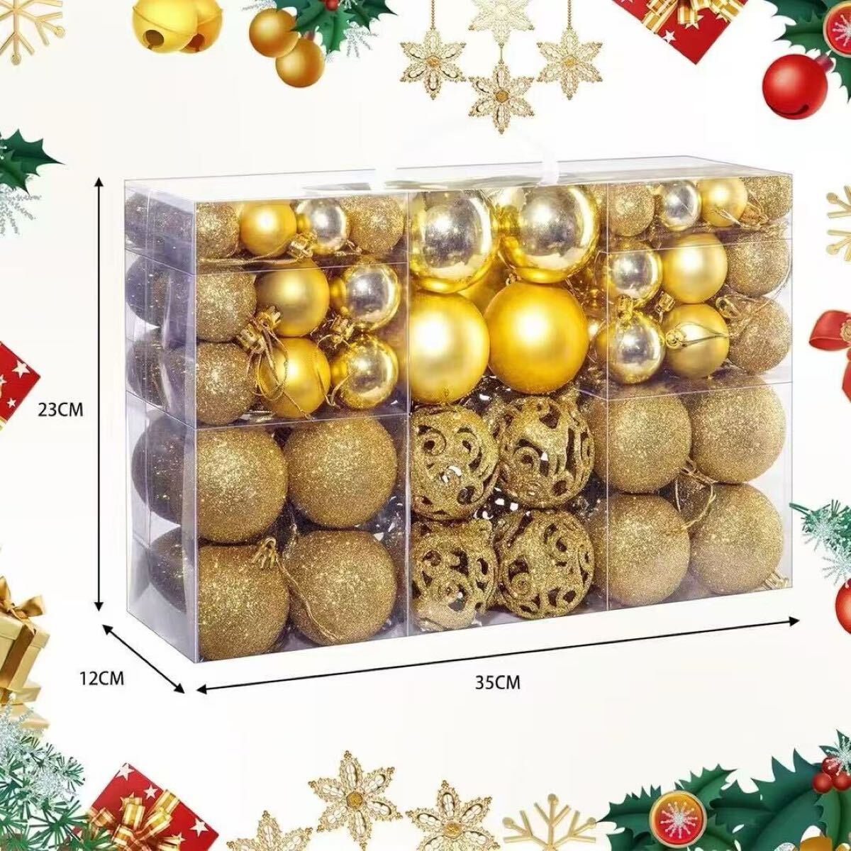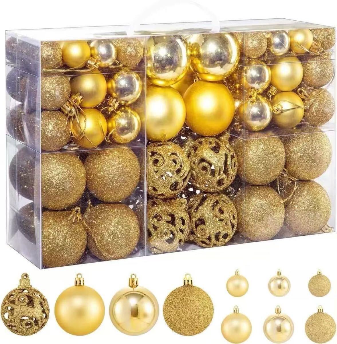【飾り付けやすい 持ち運びが簡単】各ボールにはキャップと紐が付いており、簡単に吊るすことができて、落ちないようにしています、子供・女性でも使えます。プラスチック製のボールは、多層収納包装、持ち運びに便利です。各ボールはシームレス接続を採用し、洗練された外観を作り出しています。(ご注意:少量自体の特性によって、少量のラメの破片が付着しています。)