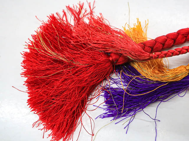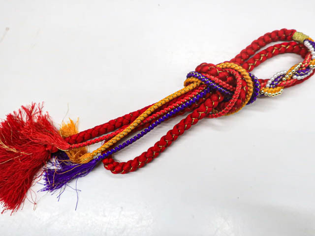 帯締めに糸飛び出しが見受けられますがリサイクル商品としては綺麗な状態のお品物です。 |