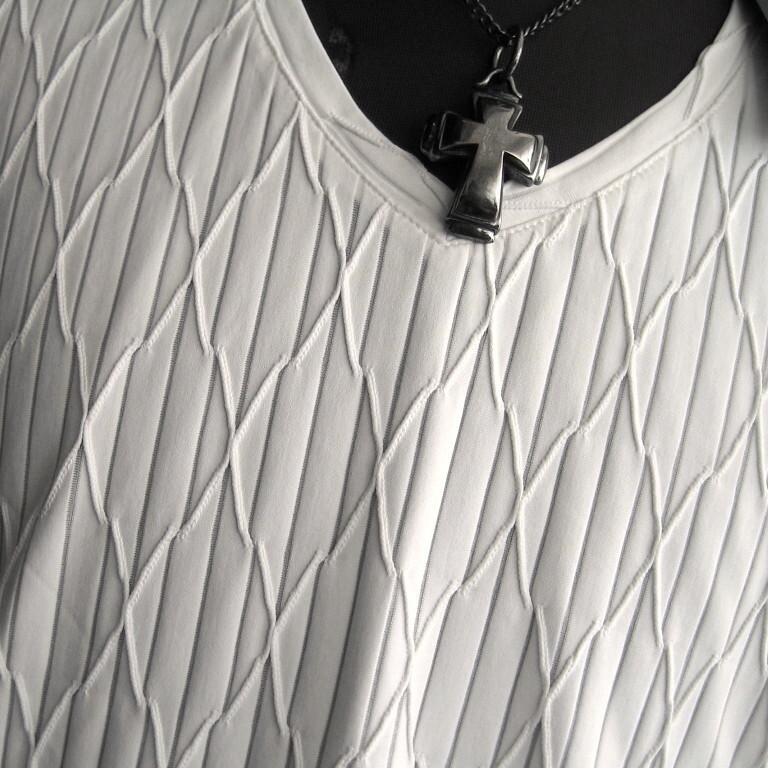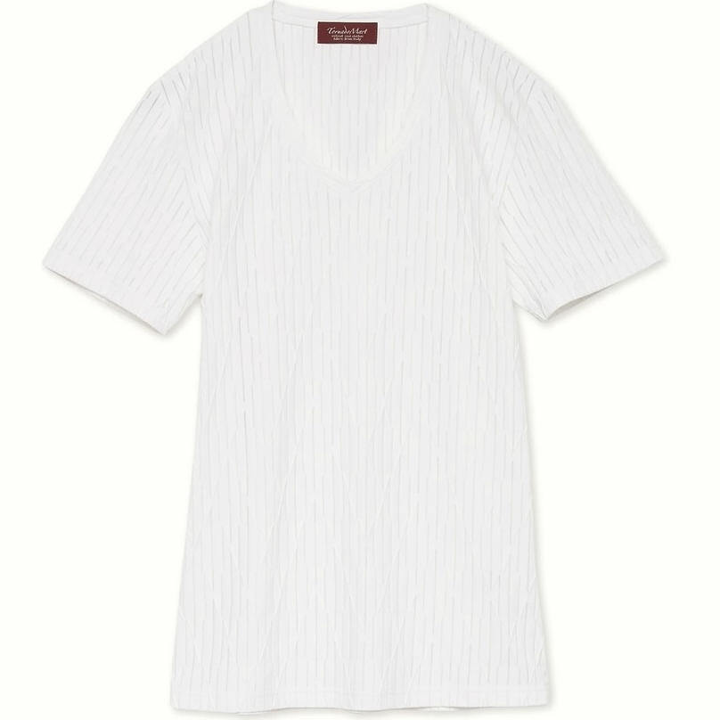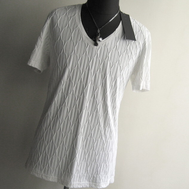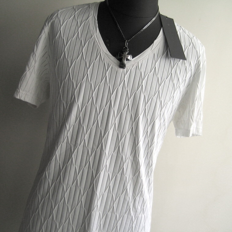 1.5万 新品 L トルネードマート ダイヤプリーツタックJQ半袖Vネックカットソーイタリア生地 ホワイト サンプル 送料無料 725