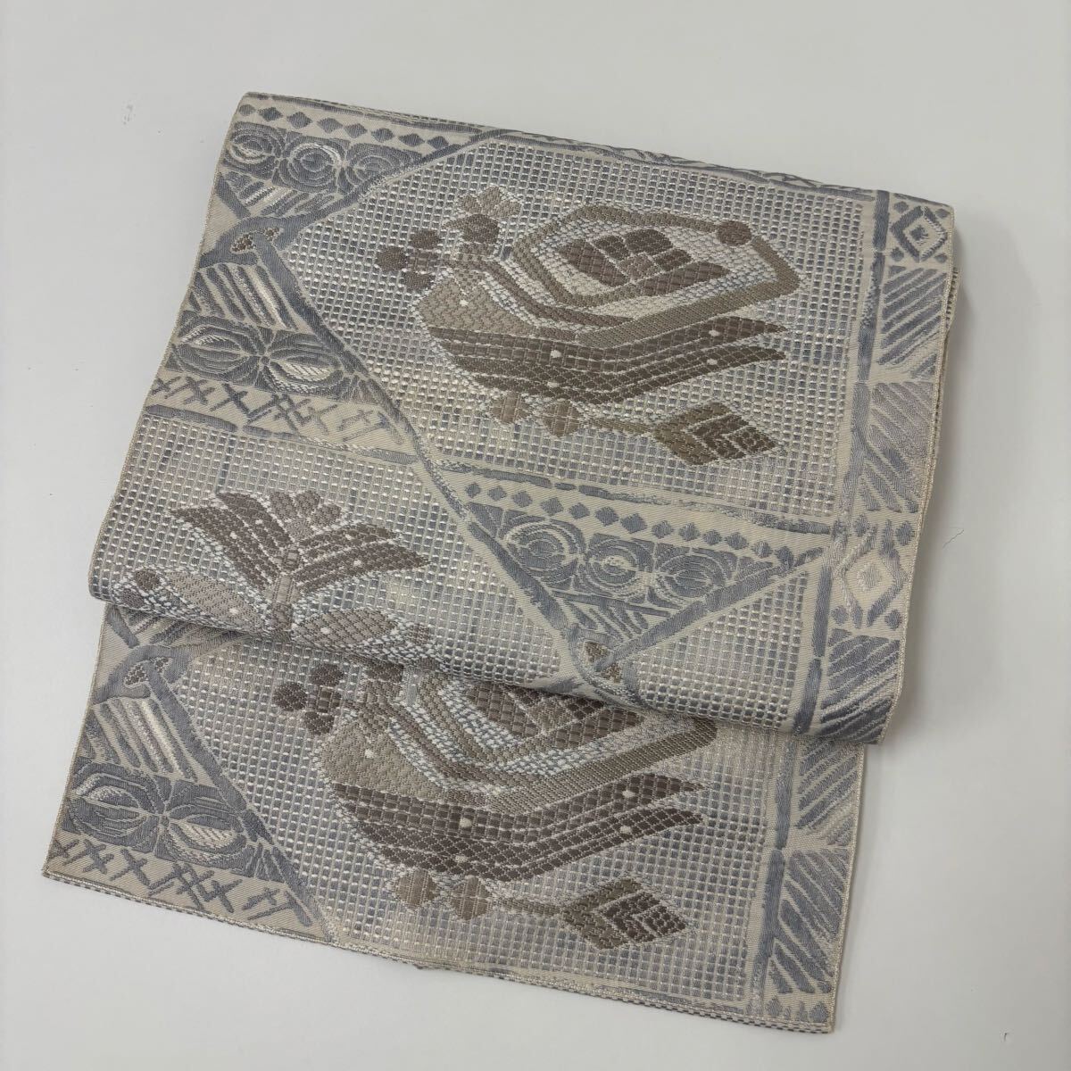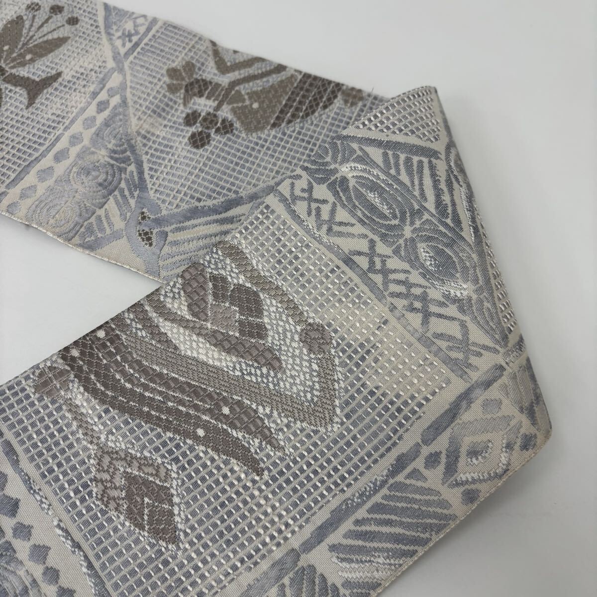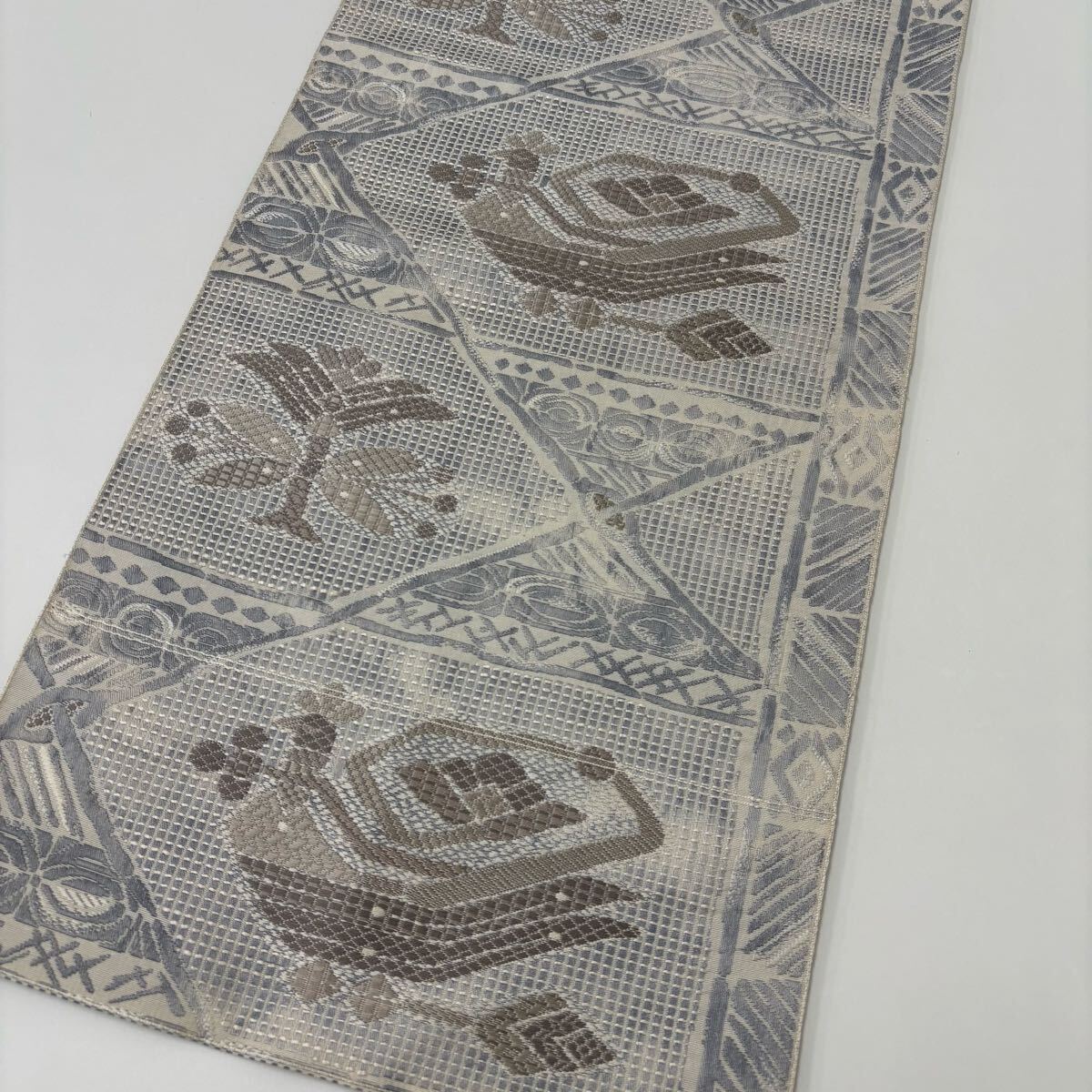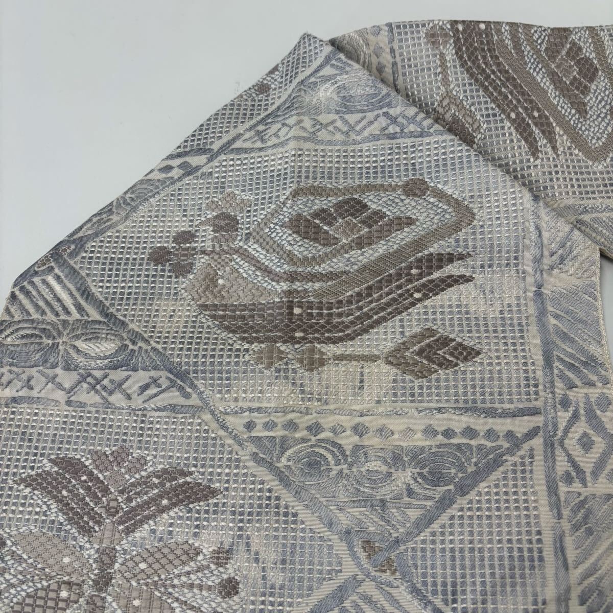 本場筑前博多織 名古屋帯 正絹 コプト文様 八寸 着物 F-2078